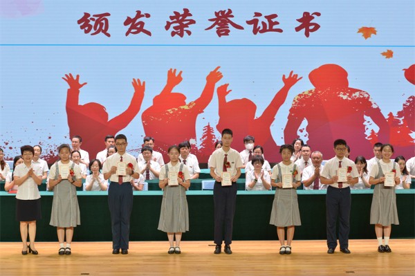 学生处徐枫主任宣读了优秀毕业生、优秀共青团员、优秀共青团干部表彰决定。李笑梅执行校长为获奖的优秀毕业生代表们逐一颁奖并合影留念。