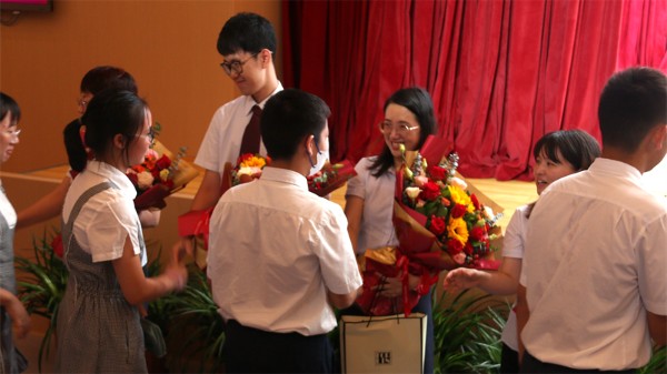 三年求学路,一生师生情。各班学生代表有序上台向班主任们表达最真挚的祝福并送上纪念礼物。