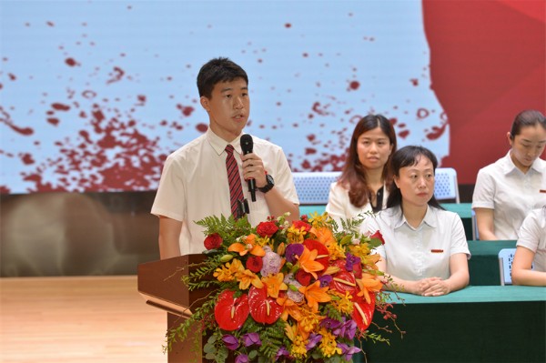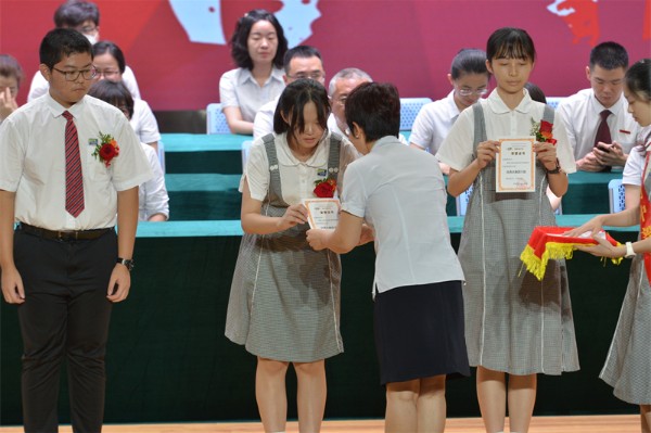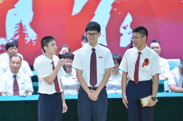 初三(7)班学生代表王业淇同学分享了自己的毕业感言。他首先追忆了初中三年在初中部点点滴滴的幸福和收获,表达了对恩师和母校的由衷感激,同时勉励同学们不要忘记实验精神是一种潜心钻研学问的精神,希望每一位同学在未来的日子里能继续坚持,追求卓越。