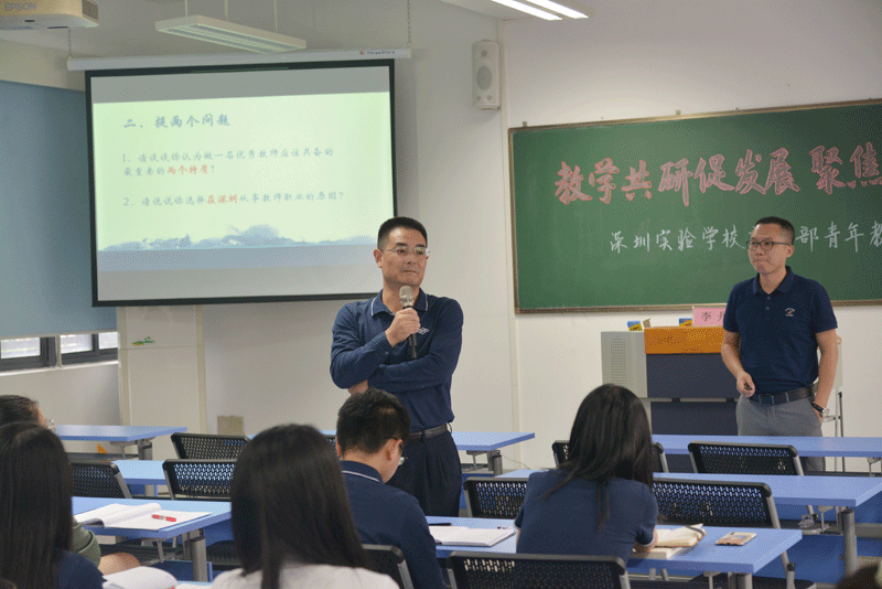 2020年10月23日下午,初中部教务处组织了第二场青年教师成长培训活动。本次培训请到了深圳市福永中学办公室副主任李丹。李丹曾荣获宝安区“优秀教师”“优秀班主任”“优秀共产党员”“初中教学工作先进个人”“2020年宝安区年度教师”等荣誉称号。李主任用“越过山丘,看见诗和远方”这样别致的主题开场,同时用“深圳”“福田”“深圳实验学校”等几个我们熟知的名词拉近与大家的距离。随后,李主任提出两个问题:“请谈谈你认为做一名优秀教师应该具备的最重要的两个特质?”“请说说你选择在深圳从事教师职业的原因?”,在场青年教师积极参与互动,邓旭副校长也参与其中。紧接着,李主任用“求真的情怀,悟道的行动”这两句精炼的语句总结,解答做一名好老师究竟需要什么特质?