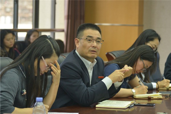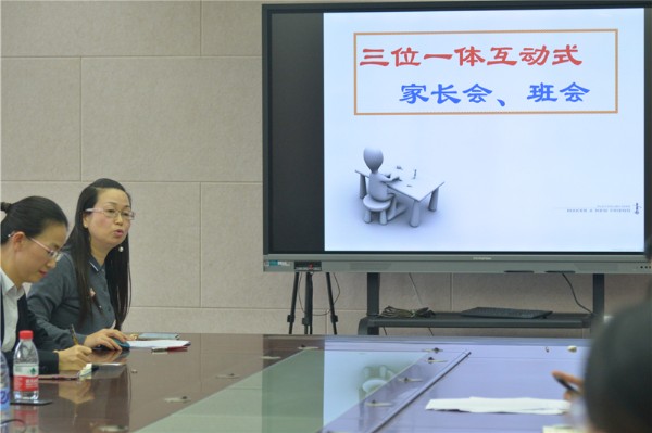 学生的教育引导需要智慧,家长会的设计同样如此。同事们眼中知性、优雅又充满智慧的周梁老师为班主任们介绍了她的家长会模式——回归人本、多元评价、三位一体互动式家长会。她认为,成功的家长会需要根植诚意,不吝赞美,追求创意,注重效果,精于设计。要在氛围创设中升华主题,仅仅在形式上下功夫是事倍功半,浪费家长和学生的时间。形式要紧密适应内容需要,可以是沟通型、感恩型,也可以是学情分析型、经验交流型等。在三位一体互动式家长会中,可以引导家长和学生互诉衷肠,师生之间、学生之间、父母之间交叉倾听,相互借鉴,就形成了一种科学育人的全方位提升会,营造出“爱的教育”和“赏识教育”这两股辐射力,在温暖学生和家长的同时,也带给班主任无限的职业幸福感。