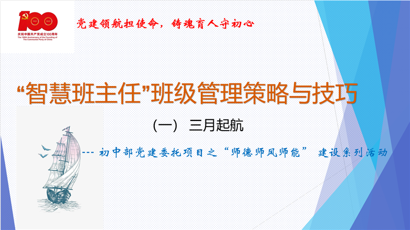 助力班主任专业成长,打造智慧型班主任队伍,初中部历来重视班主任的能力培养和素养提升,在每个学期都会举办班主任专业能力提升系列讲座。3月26日,以“‘智慧班主任’班级管理策略与技巧”为题的系列讲座迎来了第一讲,初一年级主任彭伟琼老师和英语学科主任周梁老师受邀为全体班主任分享了她们的治班经验与智慧,与会班主任们纷纷表示此次讲座干货满满,收获颇丰。