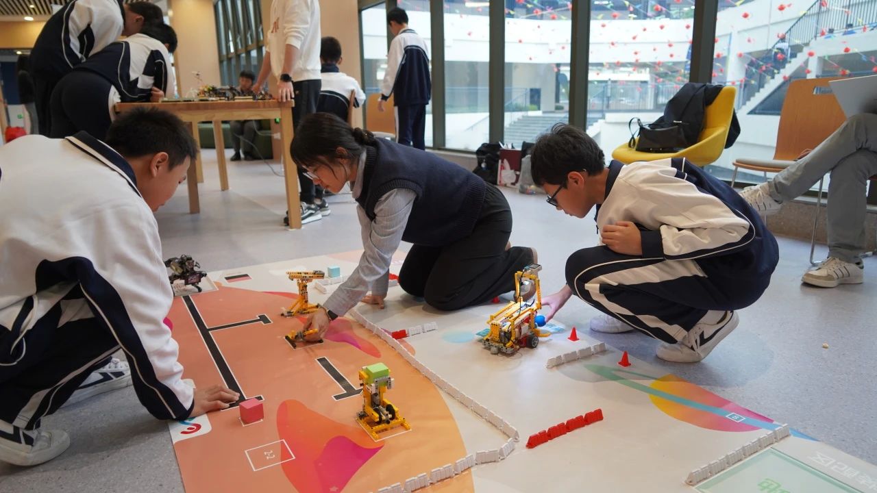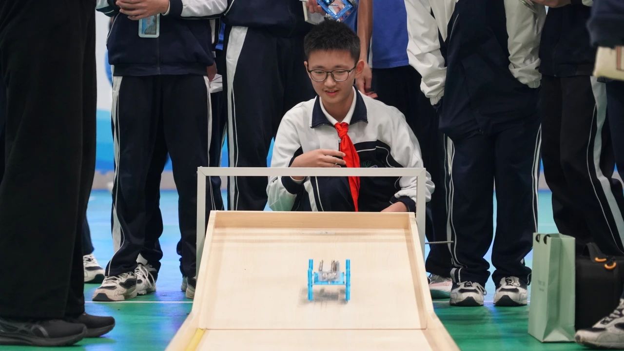 开幕式后,头奥赛的八大项目比赛陆续展开,参赛队员们带着自制作品展开了一场场激烈角逐,操场上、篮球场、图书馆,热闹非凡。