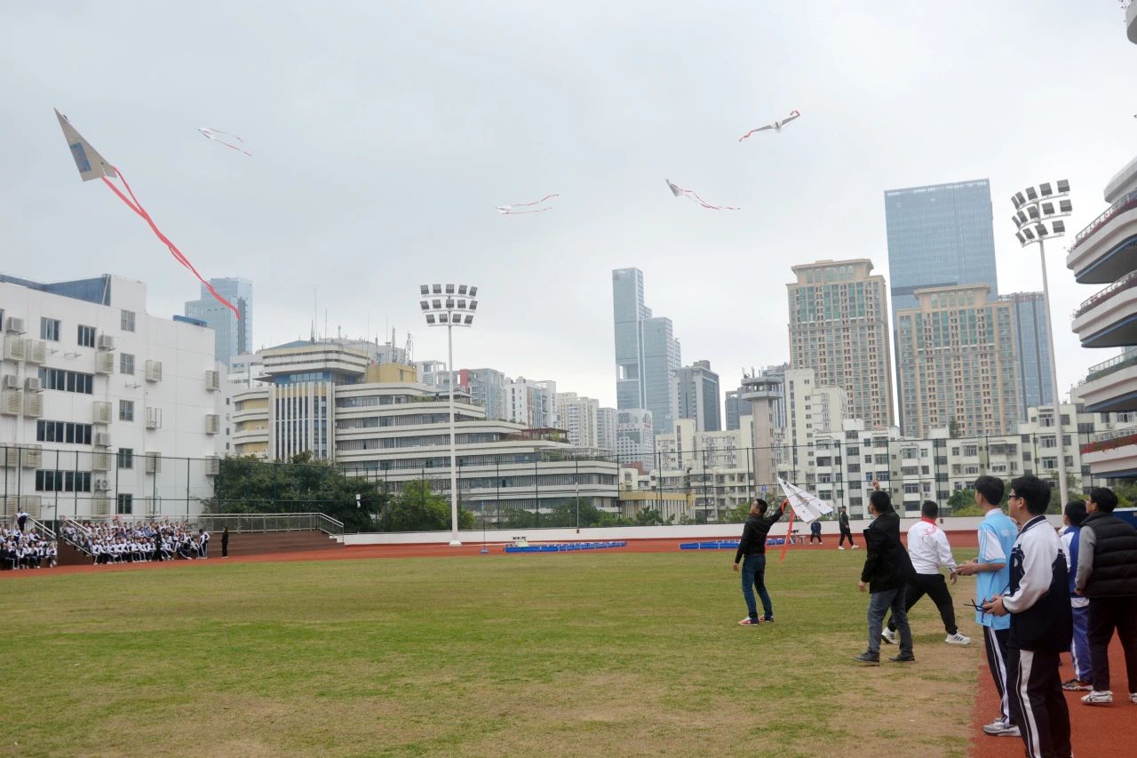 学校还邀请到了上海外国语大学附属龙岗学校航模队。无人机编队飞行表演和“龙行龘龘”飞行表演将开幕式推向高潮,随后队员们遥控着手上的纸飞机变换队形,现场气氛热烈。