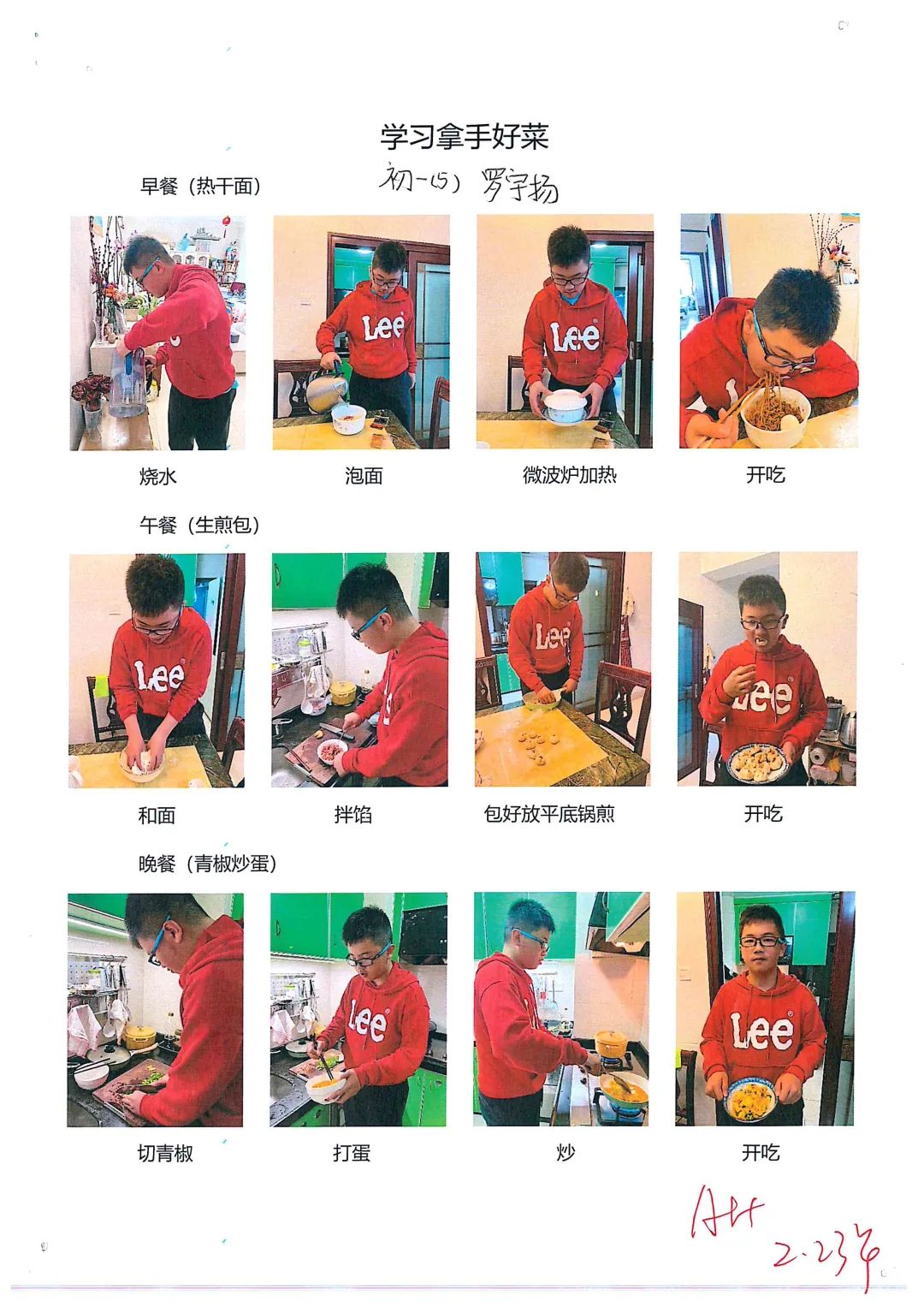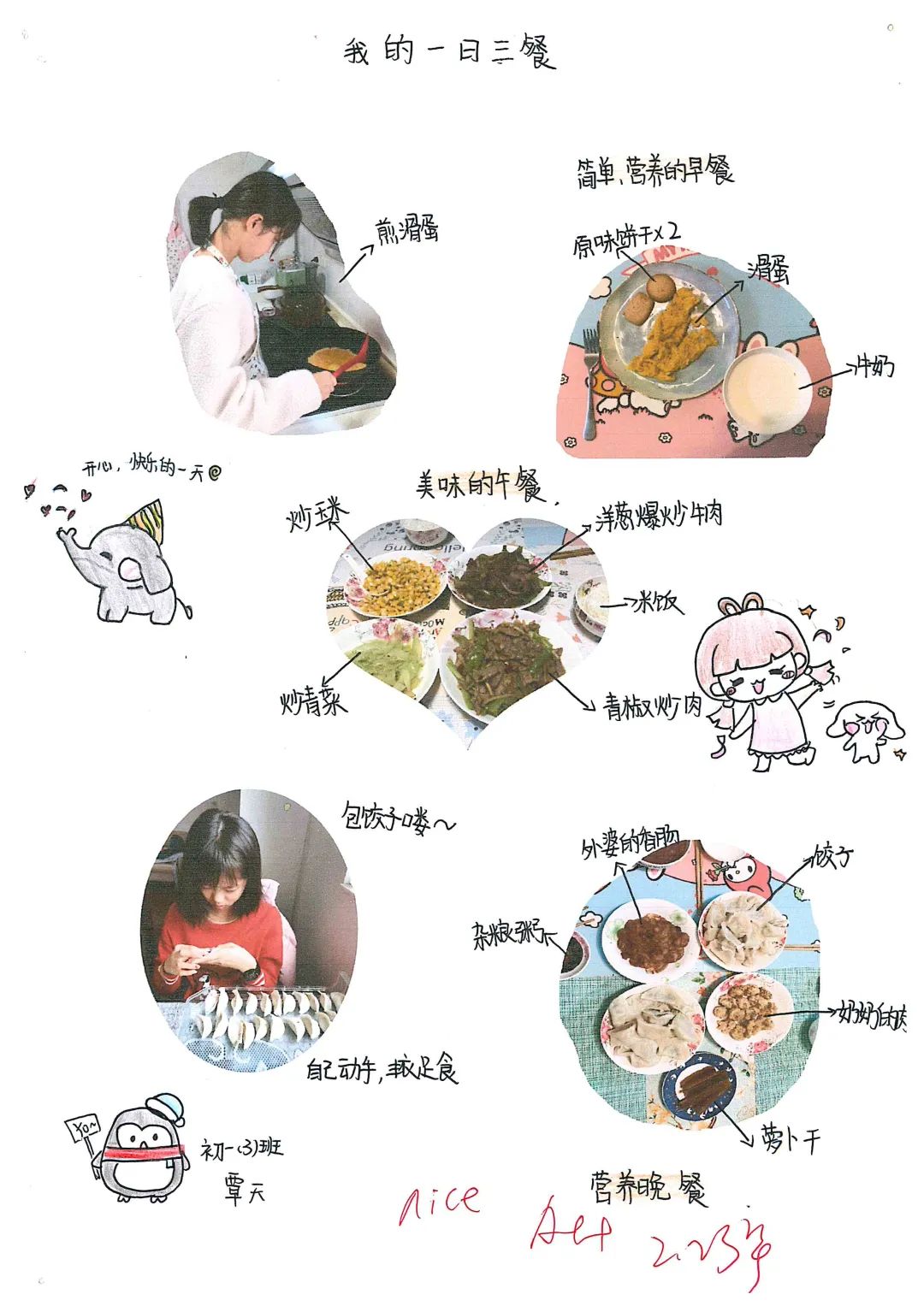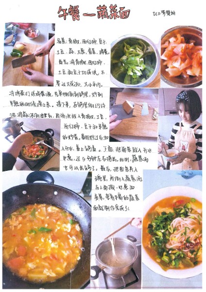 这是我们做的拿手菜,卖相还不错吧?味道也很好呢,爸爸妈妈都赞不绝口!我们平时总是吃现成的,并不知道做饭很辛苦,亲身体验之后才发觉真是不易。比如说要提前想好要做什么菜、食材够不够、去哪里购买、家人口味都要照顾到、荤素比例合适、营养均衡、菜式不能重复等等,更别提做菜时的艰难和忐忑了!想想妈妈常年累月精心准备一日三餐,还要忍受我们的挑剔,想想真是惭愧呀!今后,我们要学会多体谅父母的不易。我知盘中餐,餐餐皆辛苦!