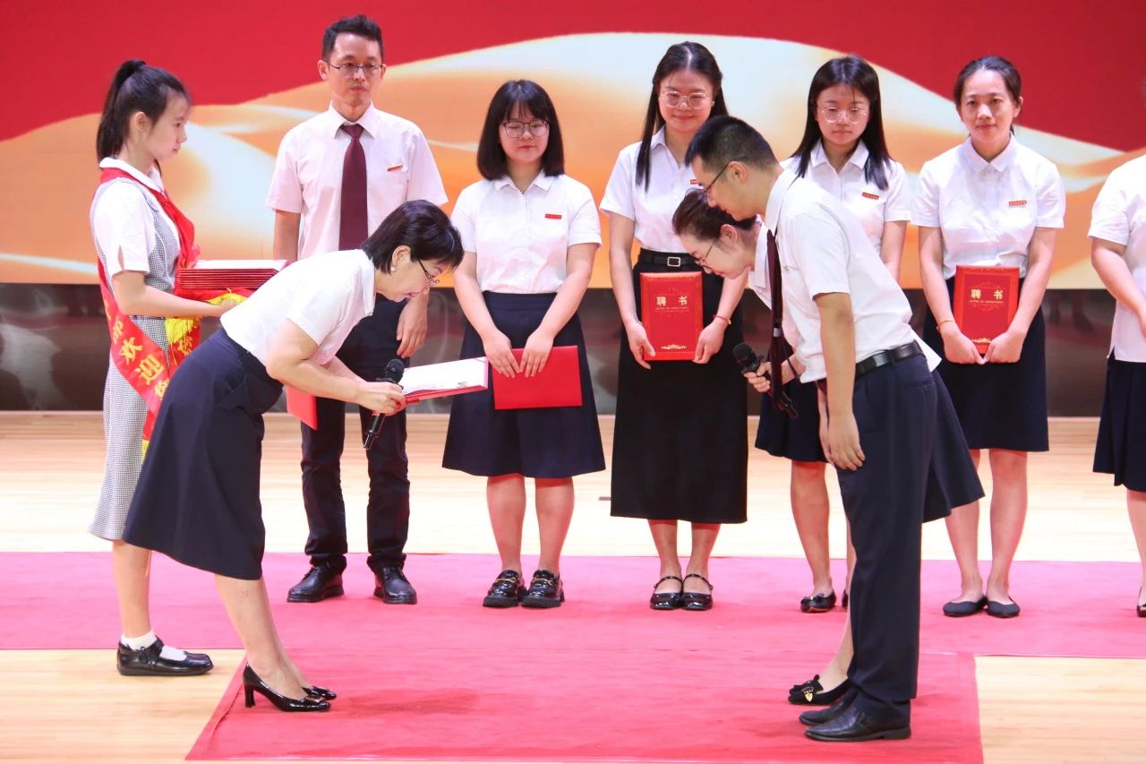 深圳实验学校李笑梅副校长为新任年级主任、班主任颁发聘书,不仅象征学校对学生未来成长与发展寄予的厚望,更深刻地传达了她将这份沉甸甸的责任,郑重地托付给了每一位教师。从此责任扛我肩,风雨兼程为生忙。不求桃李遍天下,只愿青出蓝更深。