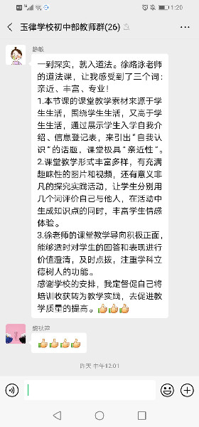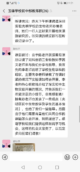 一天的学习落下帷幕,玉律的老师们虽已略感疲惫,但依然抑制不住内心的激动,拟了大段的感谢信,字里行间充满了力量和信心,他们坚信在以后的日子里坚持在教学中生成,在实践中总结,与优秀通行,未来,定能让改变发生!(文/教务处胡晓江 图/林艳琳)