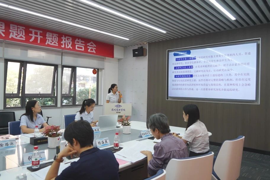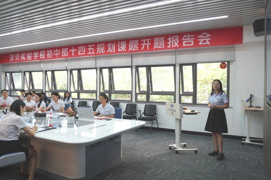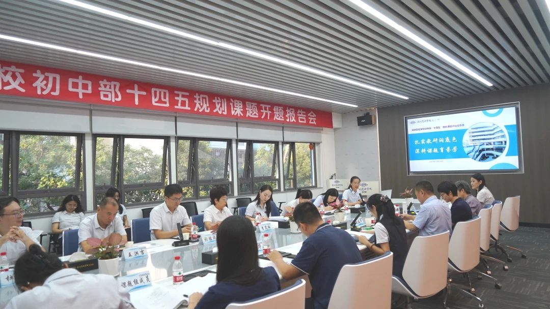 金秋送爽,硕果飘香。10月30日下午,初中部召开2023年“十四五”规划立项课题开题报告会,教务处副主任彭伟琼主持本次会议。报告会邀请了南方科技大学未来教育研究中心赵建华教授、宝安中学心理健康教育中心主任张斌主任、海湾中学高级教师心理学博士杨海燕老师、深圳实验学校中学部道德与法治学科组长罗贤珊四名点评专家,深圳实验教育集团教育教学部於胜成主任、集团及校领导与课题组成员一起参加了本次报告会。