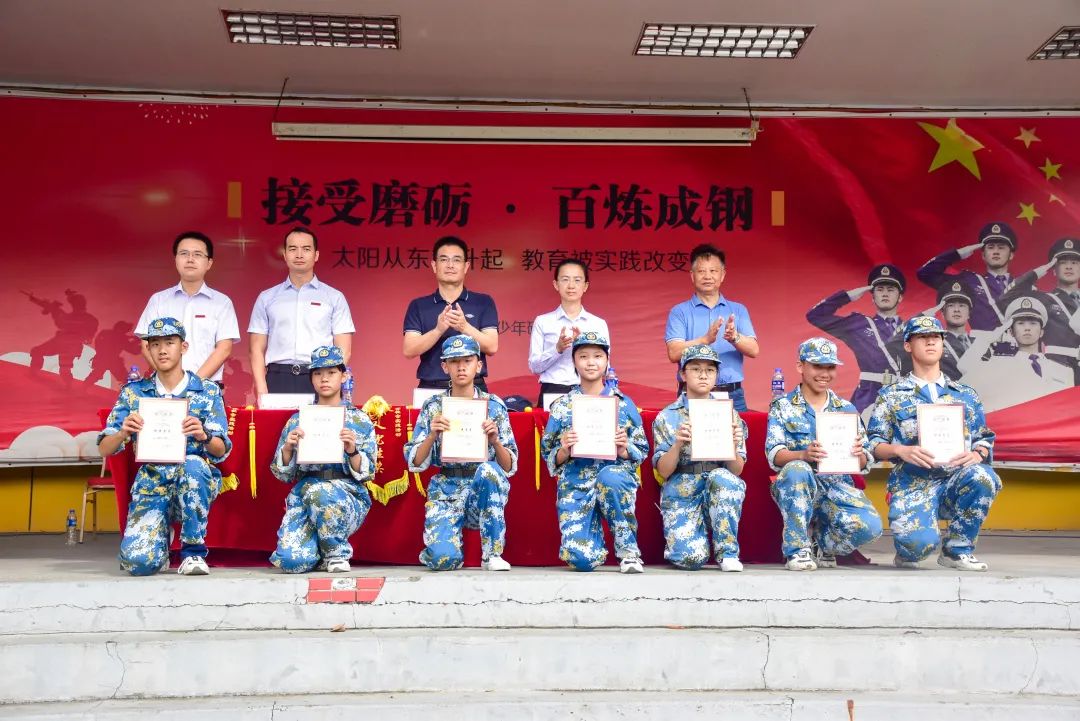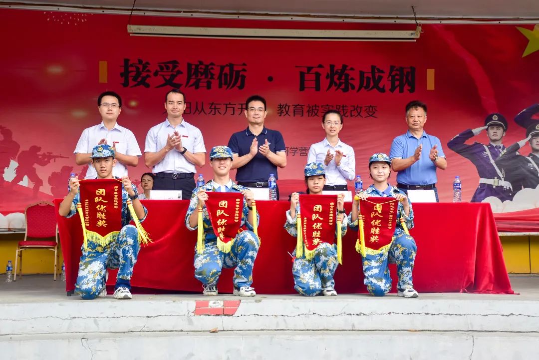 结营仪式上,各班代表展示并解说了班级同学绘制的队徽。一面面鲜艳的队徽被高高举起,一声声嘹亮的解说让所有人的心都沸腾了起来。学校及基地领导给优秀学生以及优秀班集体颁发了荣誉证书,邓旭校长的总结发言给予同学们最热切的关心和期望。