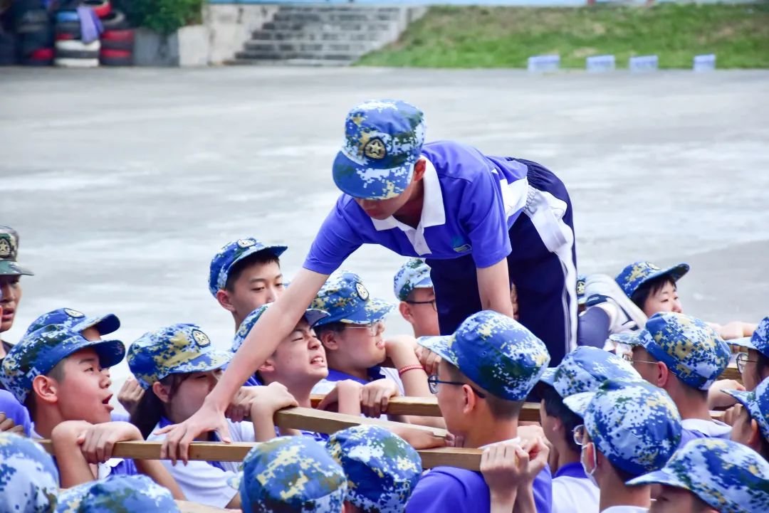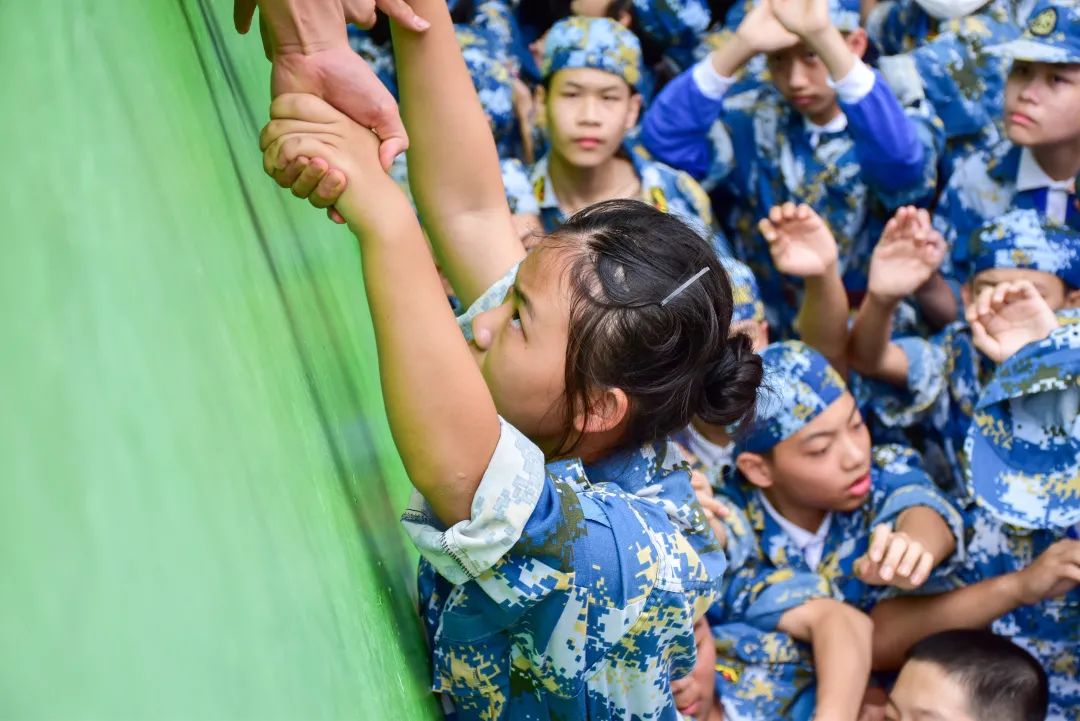 次日一早,同学们便开展了“成功墙”活动。在4.5米高的绿墙前,同学们流下了晶莹的汗水与滚烫的泪水。通过活动,同学们深刻体会到集体的重要性。“团”字的写法就是口里面有个才,细细品味这个字,只有把才藏在口里,所有人一起努力,力往一处使,这个团队便能迸发出惊人的力量。