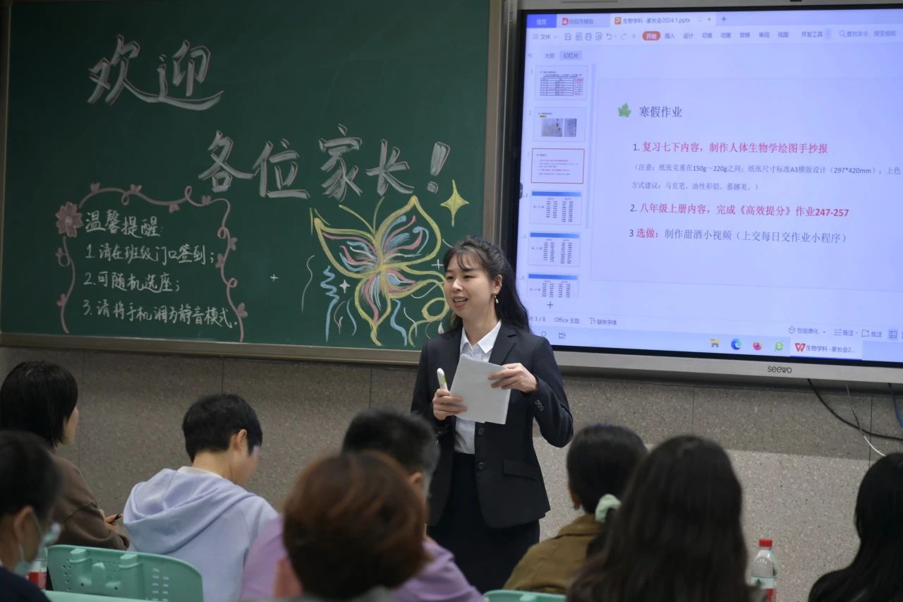 1月18日晚上7:00,家长会准时召开,初一至初三年级学生家长们进班与班主任、各科老师交流学生在校情况。除此之外,初二年级家长还在报告厅听取了心理学科吕真真老师讲授的亲子沟通讲座——《温暖的对话——如何与真实的孩子相处》。