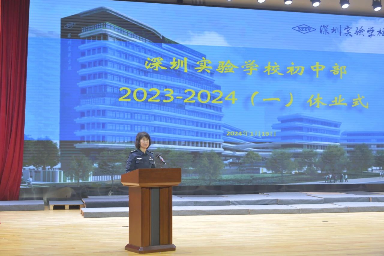 为了确保学生平安度过寒假,学校还邀请园岭派出所警官李所长上台发言。李所长对假期内各种安全事项进行了全方位的提醒。最后,在全体高唱深圳实验学校校歌的余韵中,休业式宣告结束。