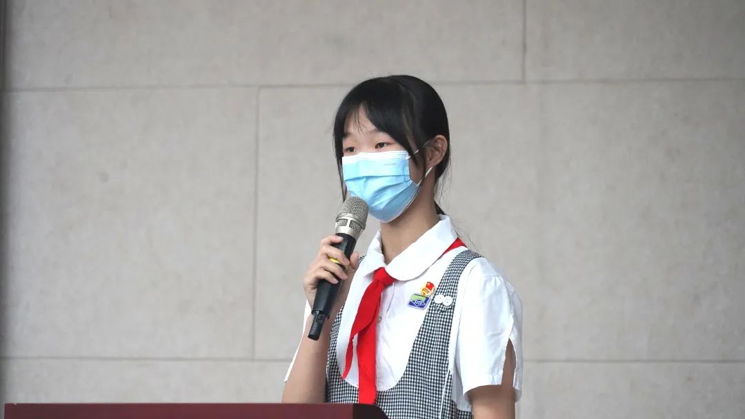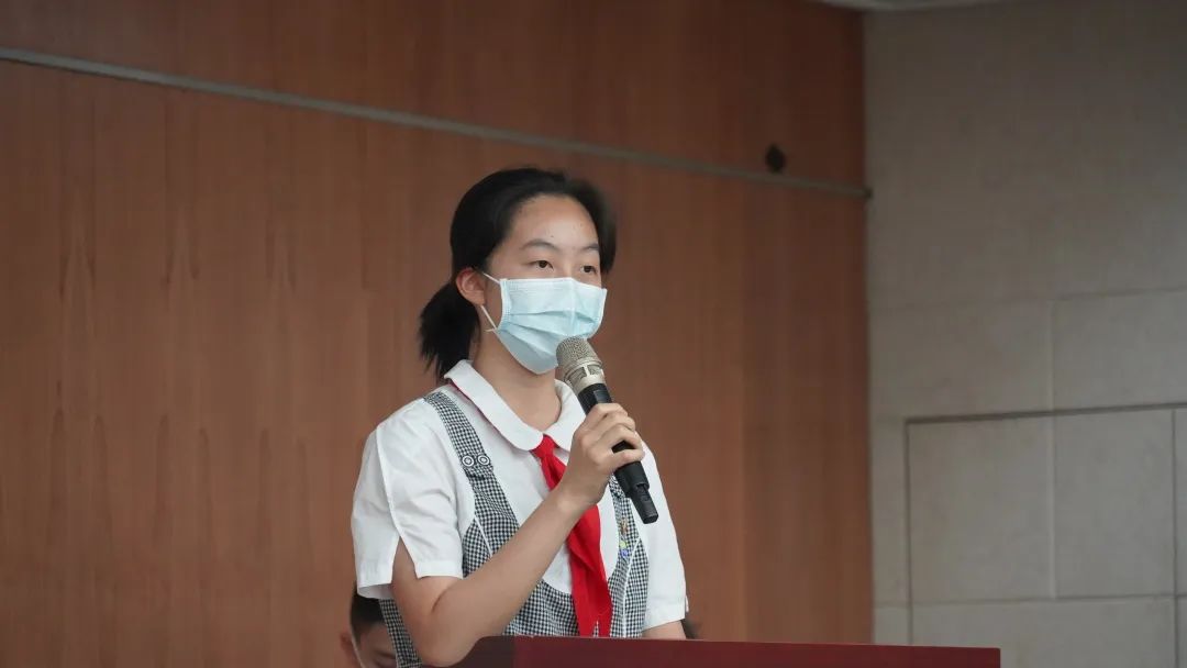 接着,初二(5)班刘佳煜同学作为少先队员代表回顾了自己的少先队生活,即将离队的少先队员们整齐排列,最后一次唱响队歌,面向队旗行最后一个队礼,为自己的少先队生活画上圆满句号。