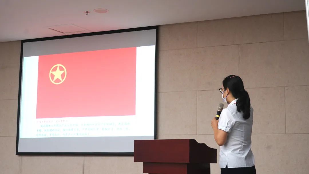 全体新团员在鲜艳的团旗下跟随初中部团委书记王媛老师庄严宣誓,王老师对他们提出了希望和要求。