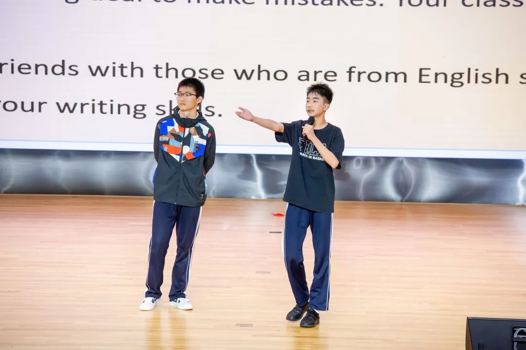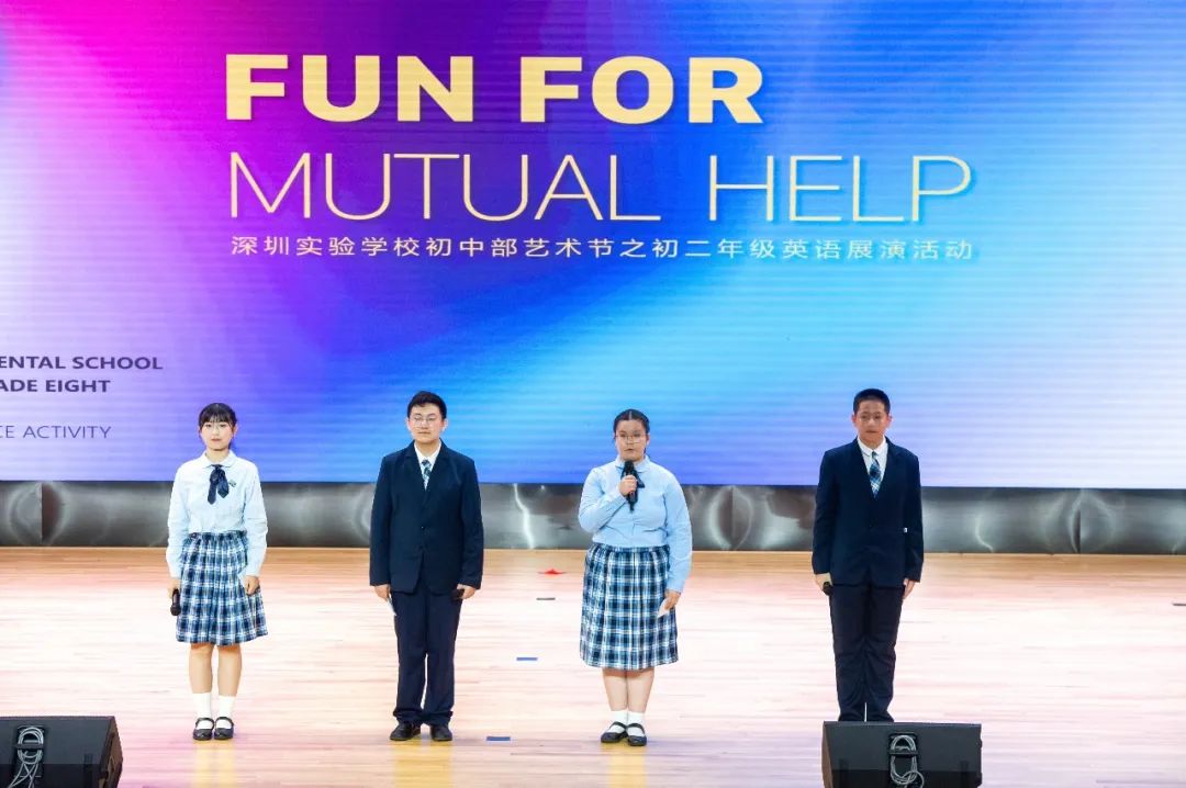 4月18日下午,初中部报告厅上演着初二年级英语展演活动——《fun for mutual help》。一个共同的主题,五个迥异的节目,风格不同,精彩相同;创意不同,感动相同;班级不同,情意相通。每一个动作、每一个眼神,每一个发音、每一个语调,字字句句,一颦一笑,同学们精益求精、臻于至善,老师们竭心尽力、精雕细琢,让我们一同享受英语的魅力,感受身边的温暖,体会生活的美好。