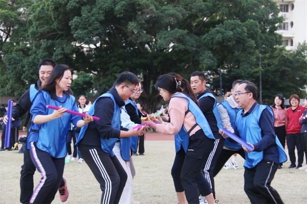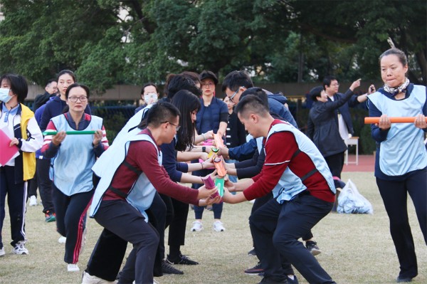 本次教工趣味运动竞赛活动与以往最大的不同在于把革命战争年代“红色元素”融入体育运动中,在个人项目“神勇投弹手”“穿越雷区”和团体项目“抢渡金沙江”“飞夺泸定桥”“战地运粮”中穿插党史知识竞答闯关环节,通过寓教于乐的方式,使党员、教工接受红色革命传统教育,唤起大家对那段峥嵘岁月的回忆,增强党史学习的趣味性。参与活动的老师们热情高涨,为了取得好成绩齐心协力、奋力拼搏,展示出充满活力的教师团队精神。
