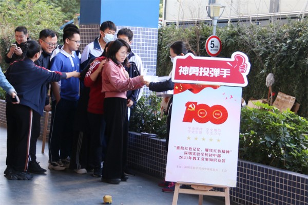绿茵展英姿,赛场竞风流。12月4日,在初中部举办2021年体育节暨第32届田径运动会之际,初中部党总支、工会组织开展了以“重拾红色记忆,赓续红色精神”为主题的教工趣味运动竞赛活动,在轻松愉快的氛围中进行党史学习教育,表达实验人“为党育人、为国育才”的决心。深圳实验学校副校长、初中部党总支邓旭书记与党员、教工一同参与了本次活动。