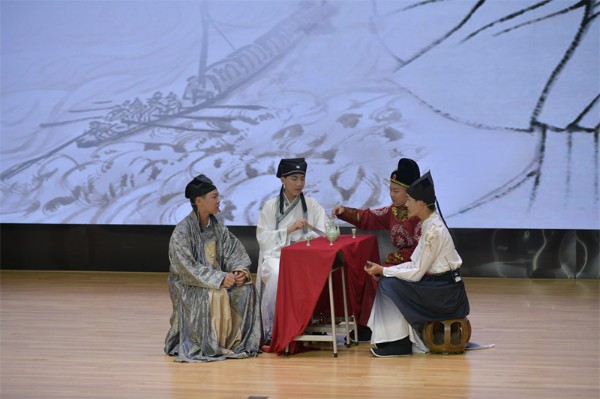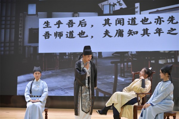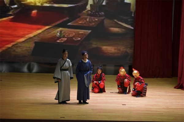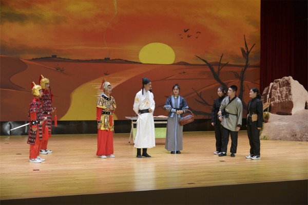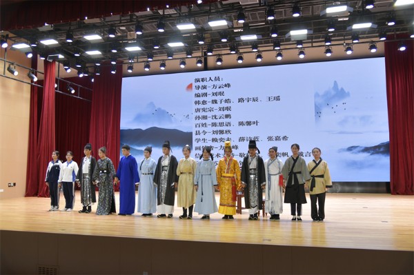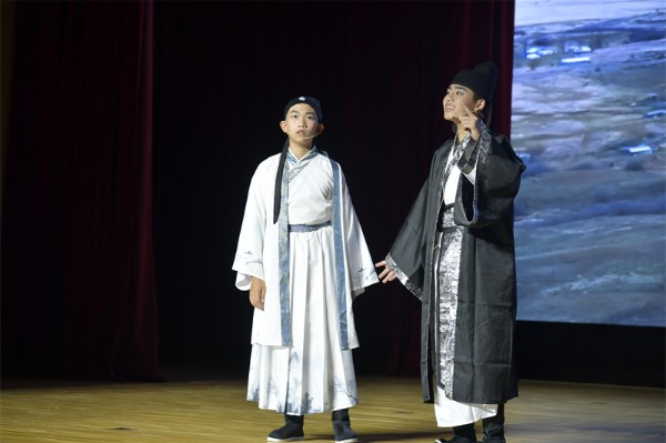 课本剧由同学们自编自演,大至剧本编写、演员海选、表演排练,小至服装、道具的筛选与采买,音响、灯光的配合与调试,都由各班组操办。“艰难困苦,玉汝于成。”在老师的指导下,大家读史书、查文献,不停地打磨剧本、修改细节。历经近两个月的辛苦准备,最终在舞台上华丽绽放,为广大师生呈现了一场诗与剧的盛宴。