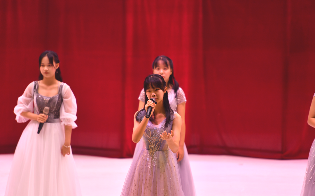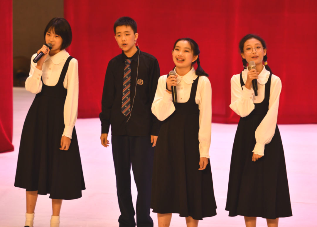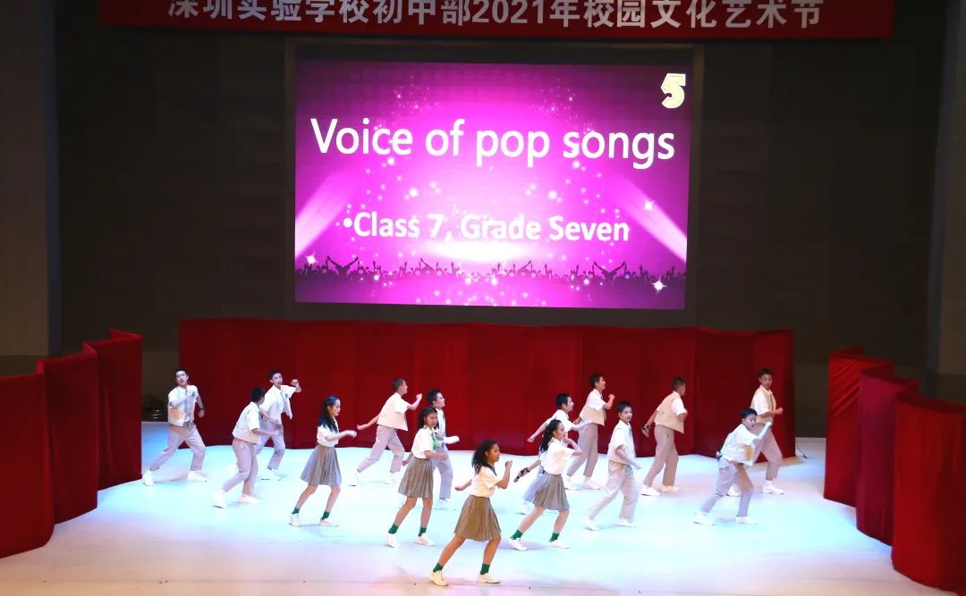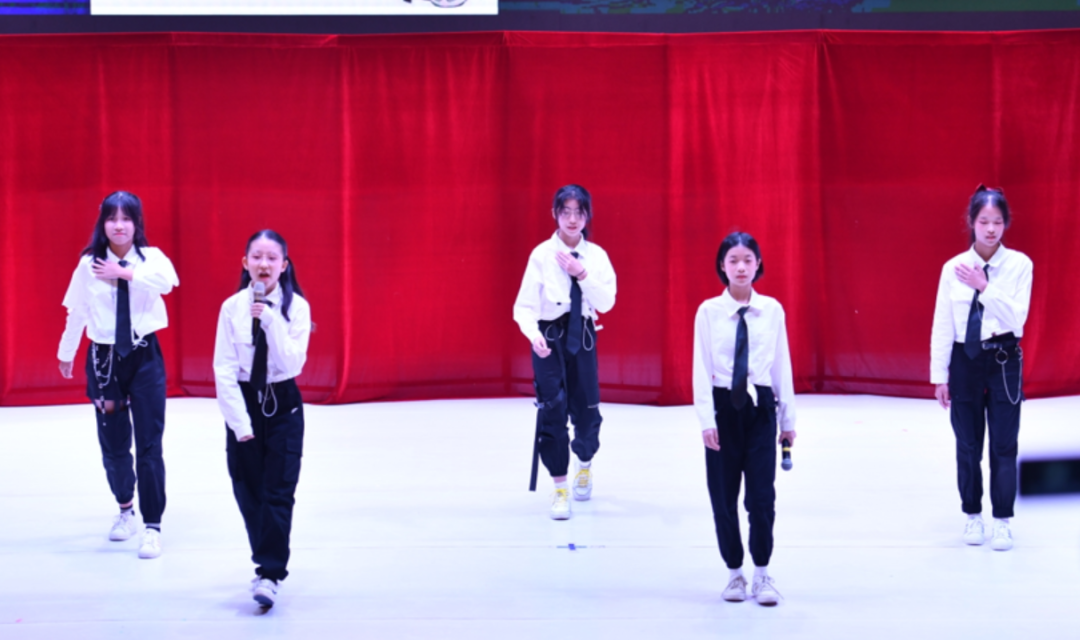 初一(2)班热歌劲舞Attention;初一(1)班和声悦耳的something just like this;初一(5)班则带来热情洋溢的Wolves,强有力的节奏感和精心编排的舞蹈瞬间吸引住观众。