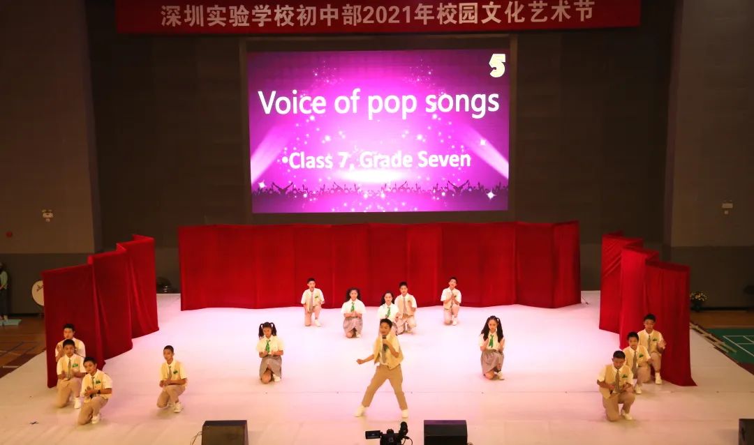 初一(7)班青春活泼的歌曲串烧Voice of pop songs,初一(6)班配合完美的Sad sometimes。