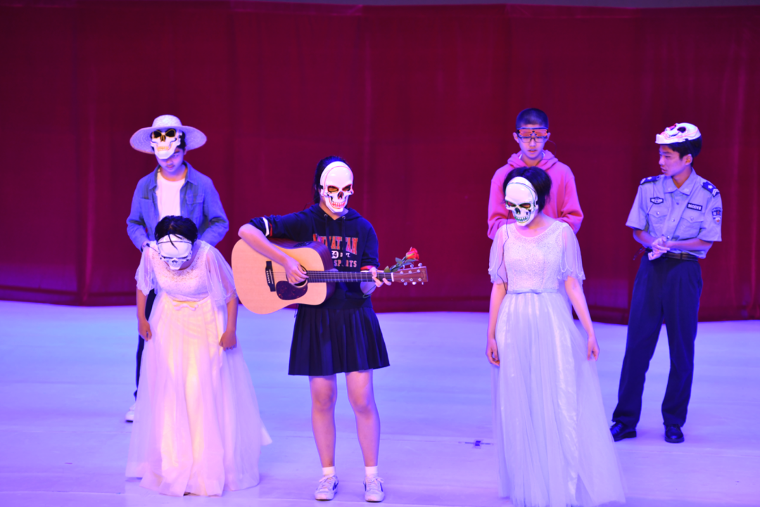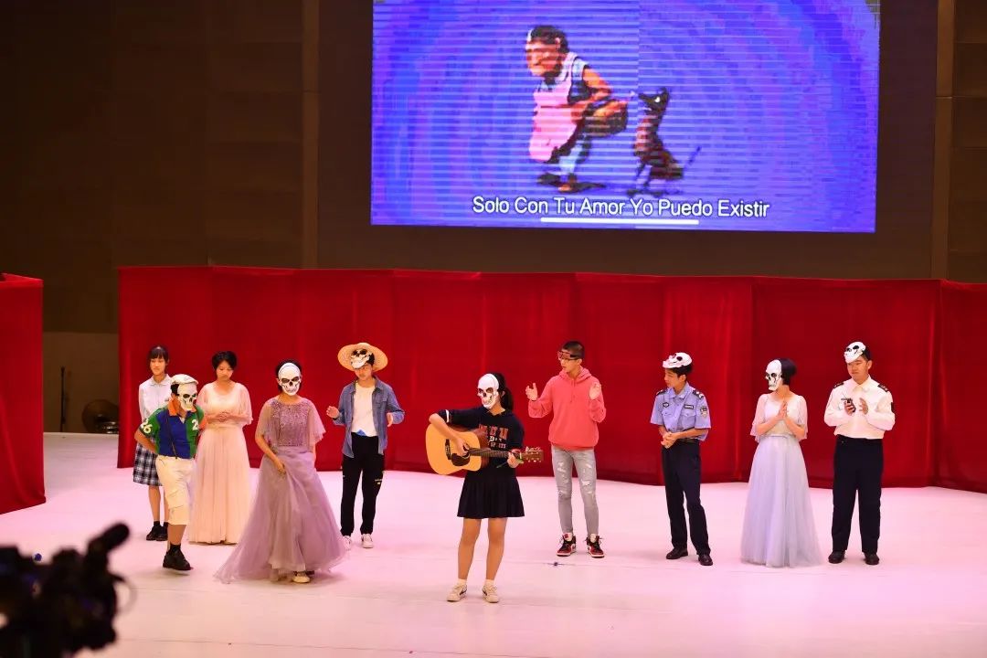 初二(5)、(6)班带来的是Coco,巧妙的动作编排和情节设置让大家在亡灵节的氛围中感受亲情的可贵。