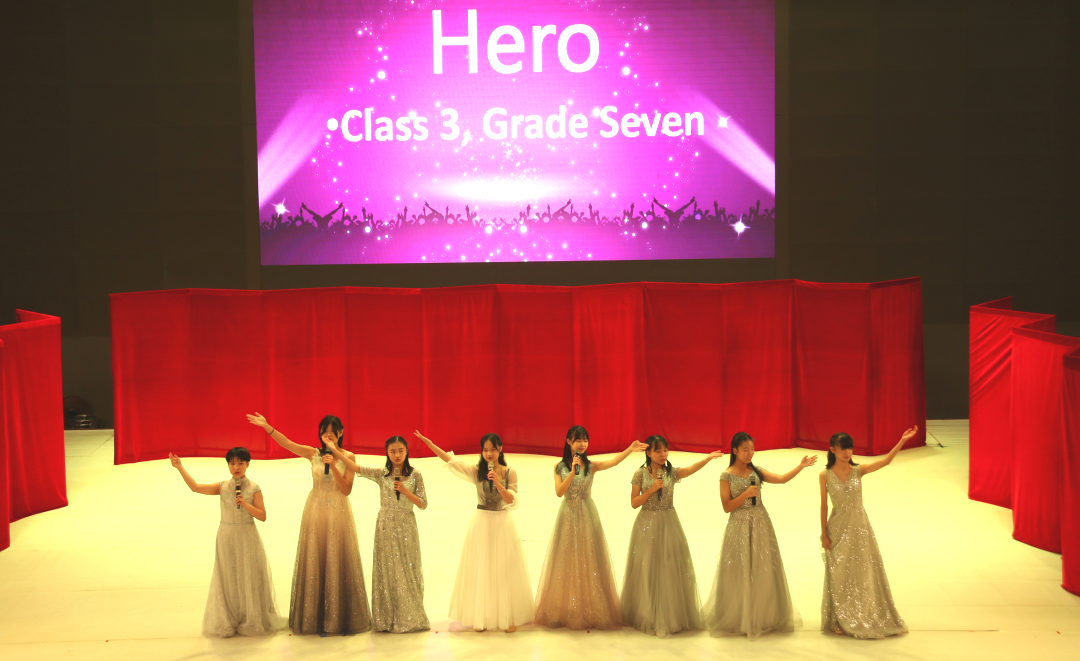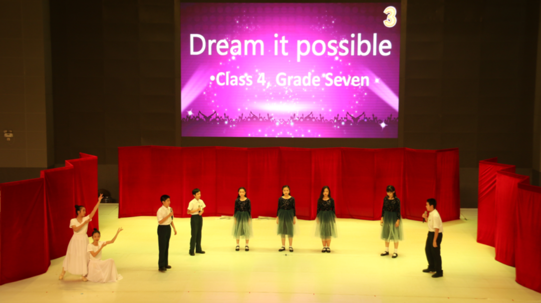 初一年级带来了7个精彩的英文歌舞表演。初一(3)班深情动人的Hero,初一(4)班励志向上的Dream it possible,芭蕾舞动作引来同学们阵阵惊叹。