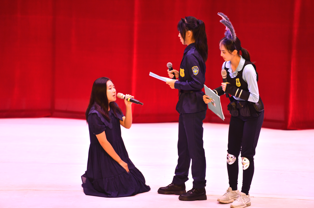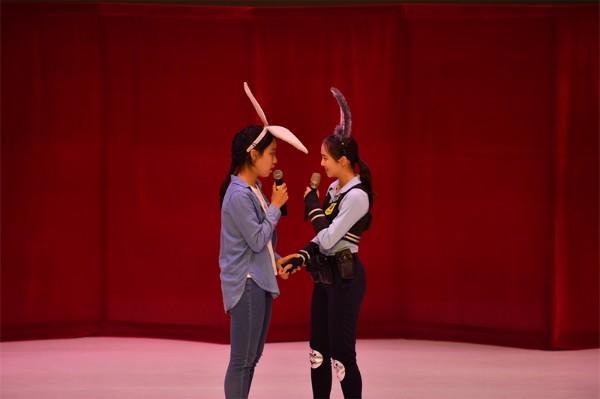 紧接着,大家又和Zootopia的主角们、初二(9)班和(10)班的演员一起体验了一把《疯狂动物城》的奇妙,配合生动的音效氛围,大有身临其境之感。