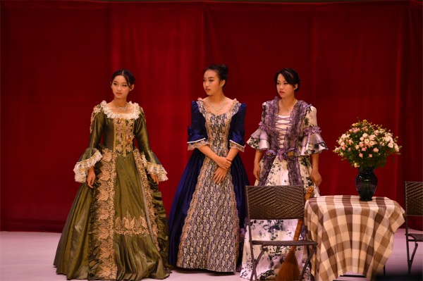 初二(1)、(2)班将莫泊桑寓意深远的短篇小说改编成剧目Necklace,精美的道具服装和表演引人入胜。