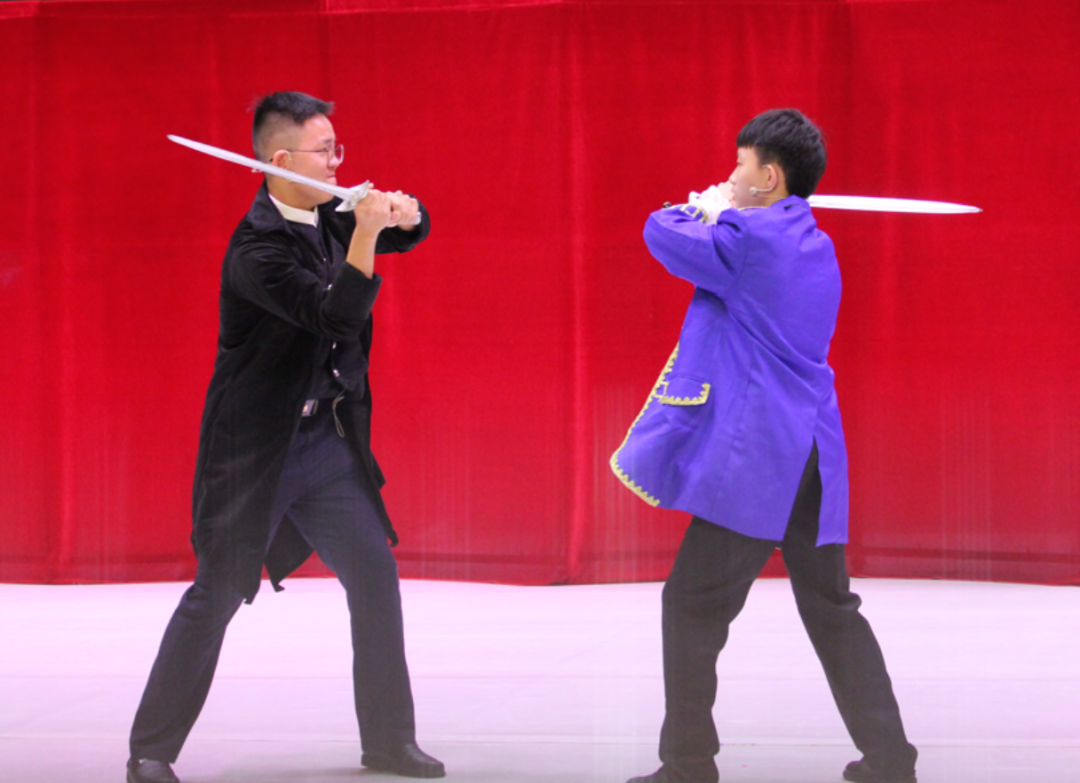 初二年级带来的是五个英文短剧表演,节目各具风格,精彩纷呈,展现了同学们扎实的英语功底和对英语的浓厚兴趣。初二(7)班和(8)班重演永恒的莎翁经典剧目Hamlet,为本次英语专场活动惊艳开场。