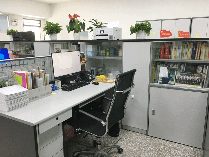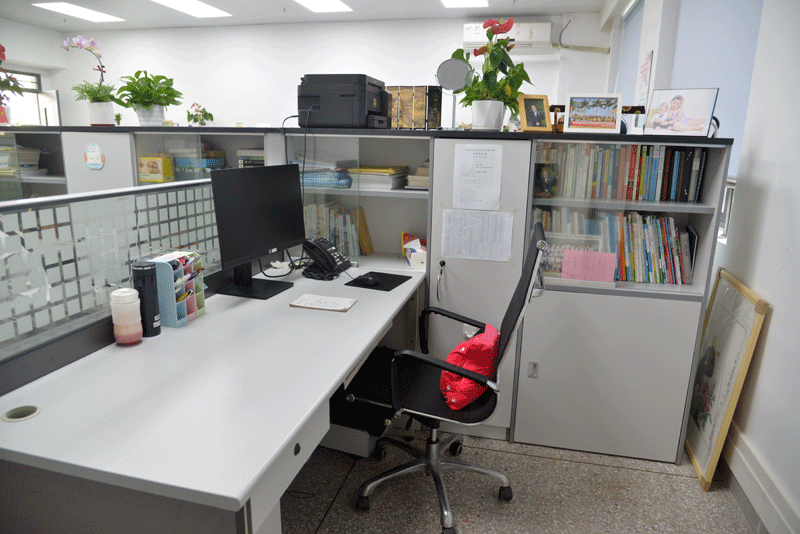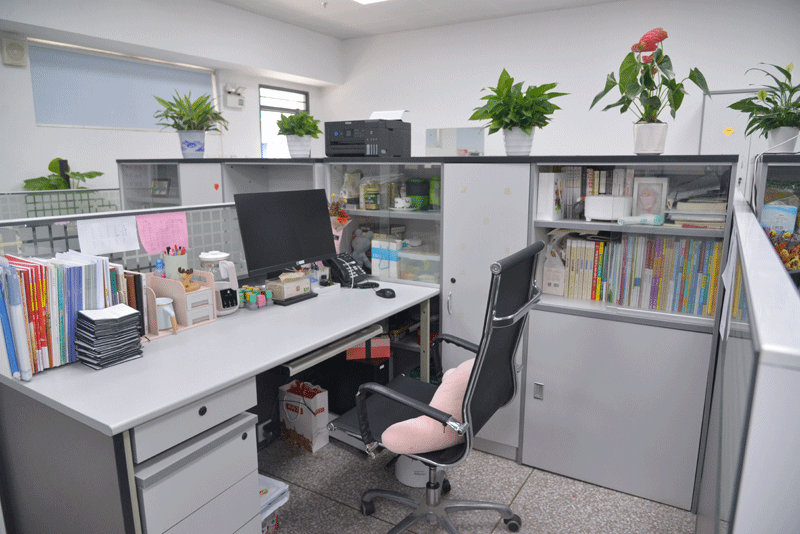 美丽进行时:在大家的努力下,卫生死角、办公桌的杂乱纸张……都不见了,映入眼帘的是一间间干净、整洁、美丽、清新的办公室。小小的办公空间里,老师们摆放了自己喜欢的小工艺品和小植物,为办公环境增添了一份生机、一股温情和一片美感。