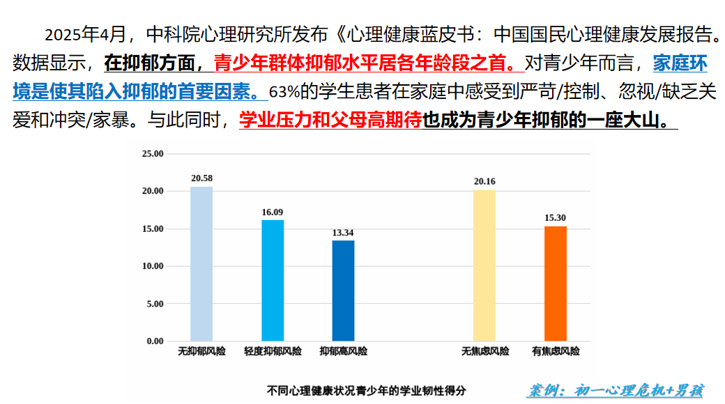 一项来自中科院心理研究所《心理健康蓝皮书》的青少年不同心理健康水平学业韧性调查吸引了家长们的眼球:乐老师通过数据让家长们觉察和分析自己的焦虑和孩子不适应背后的学业期待水平,并通过心理学期望曲线和习得性无助实验让家长们理解孩子当下的压力,调整自己对孩子的期待,从多元智能的角度正确评价孩子。