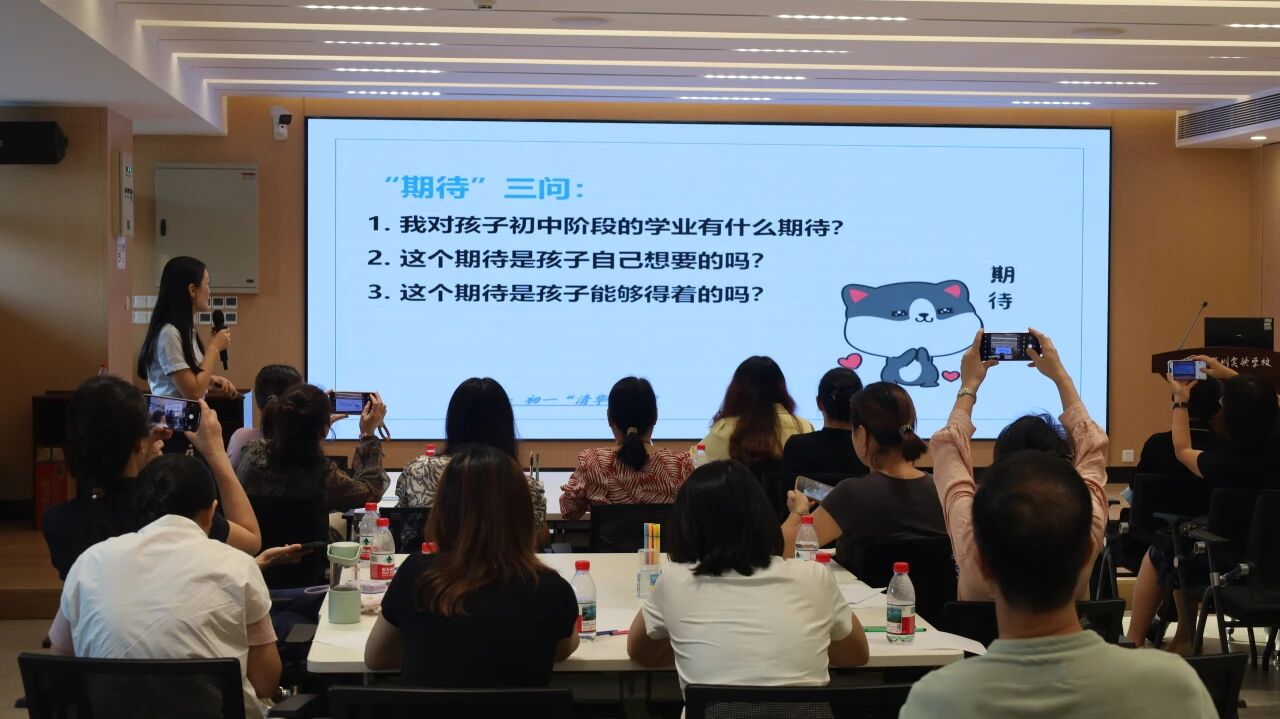 王主任在开场讲话中以多年从教经验和个人育儿心得与家长们亲切交流。小初衔接的核心是帮助孩子建立学习内驱力与心理适应力,家长如果急于用道理“纠正”孩子的“问题”,可能就无法及时“看见”孩子的真正需求。她倡议家长们用“看见”给予孩子底气,用“引领”帮助孩子找到方向!
