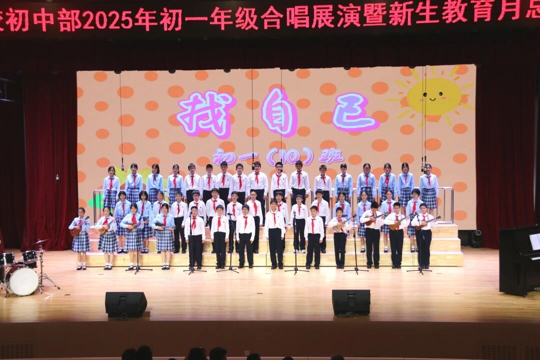 教育月的高光时刻,无疑是9月28日举行的初一年级合唱展演。这是学校“美育一件事”的集中体现,也是养成教育成果的艺术化呈现。