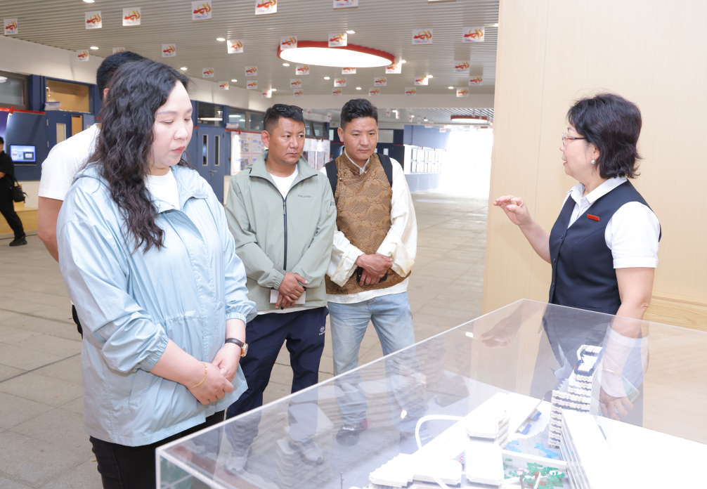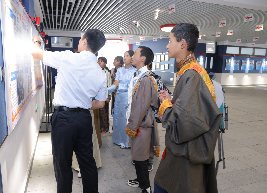 加查县代表团在集团领导及四组接待组组长陪同下参观校园,现代化教学设施与文化长廊令西藏师生赞叹。