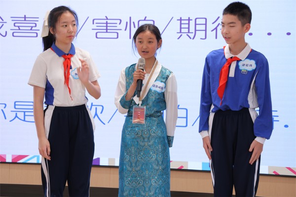 双方齐聚报告厅观看初中部“三节两周两月”主题视频。