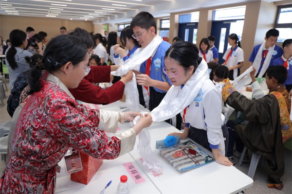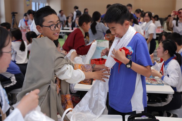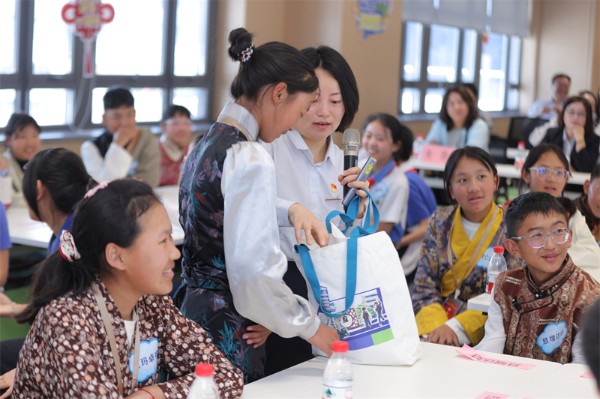 破冰环节中,两地学生通过“点名小游戏”迅速熟悉,欢声笑语不断。问答环节中,学生们对彼此生活充满好奇。礼物交换环节充满深意:深圳实验学子送出40周年特制“种子卡”及礼品,加查学生献上象征吉祥的哈达、木碗与手工艺品。加查县副县长向玲玲表示,每份礼物都承载着高原儿女的真挚祝福。