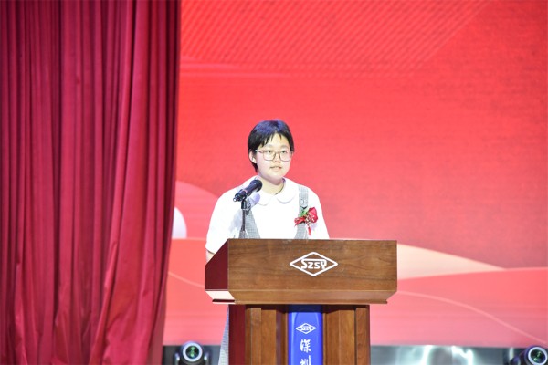 学生代表王艺霖深情回忆三载时光,由衷感激同学间的相互支持,家长的默默陪伴,老师的谆谆教导,学校的全面培养。