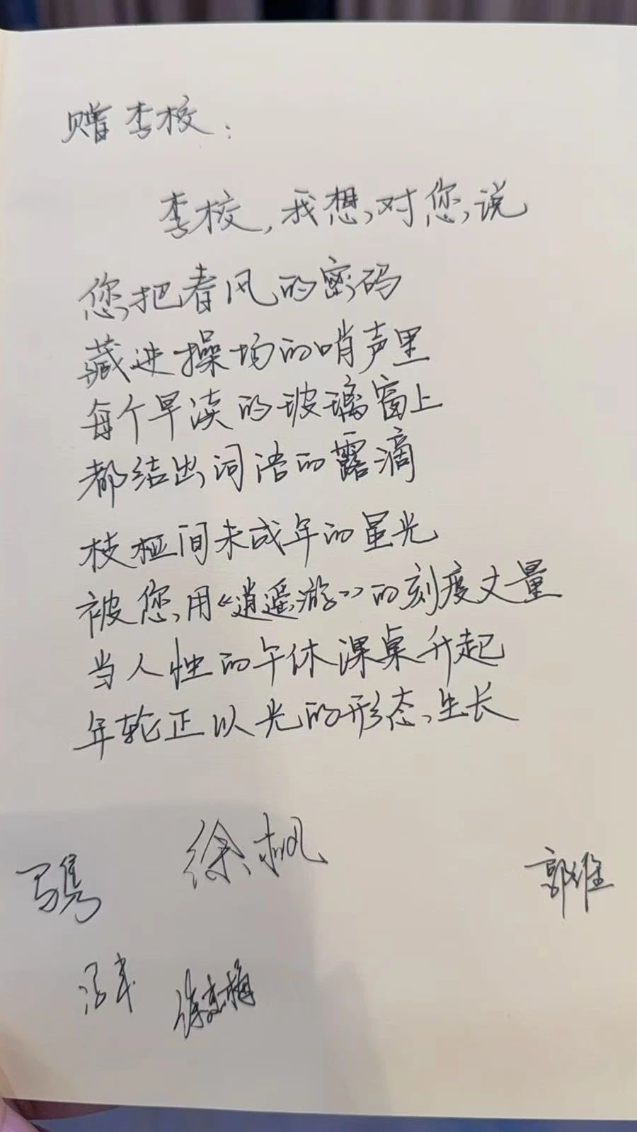 李校长寄语青年教师团队:既要永葆教育初心的定力,又要锤炼专业精进的功力,不断提升自身的教育教学水平。青年教师要在教育家精神的引领下,让专业成长行稳致远,使教育生涯进而有为,真正实现校歌中“从这里出发,走向光辉前程”的育人理想。