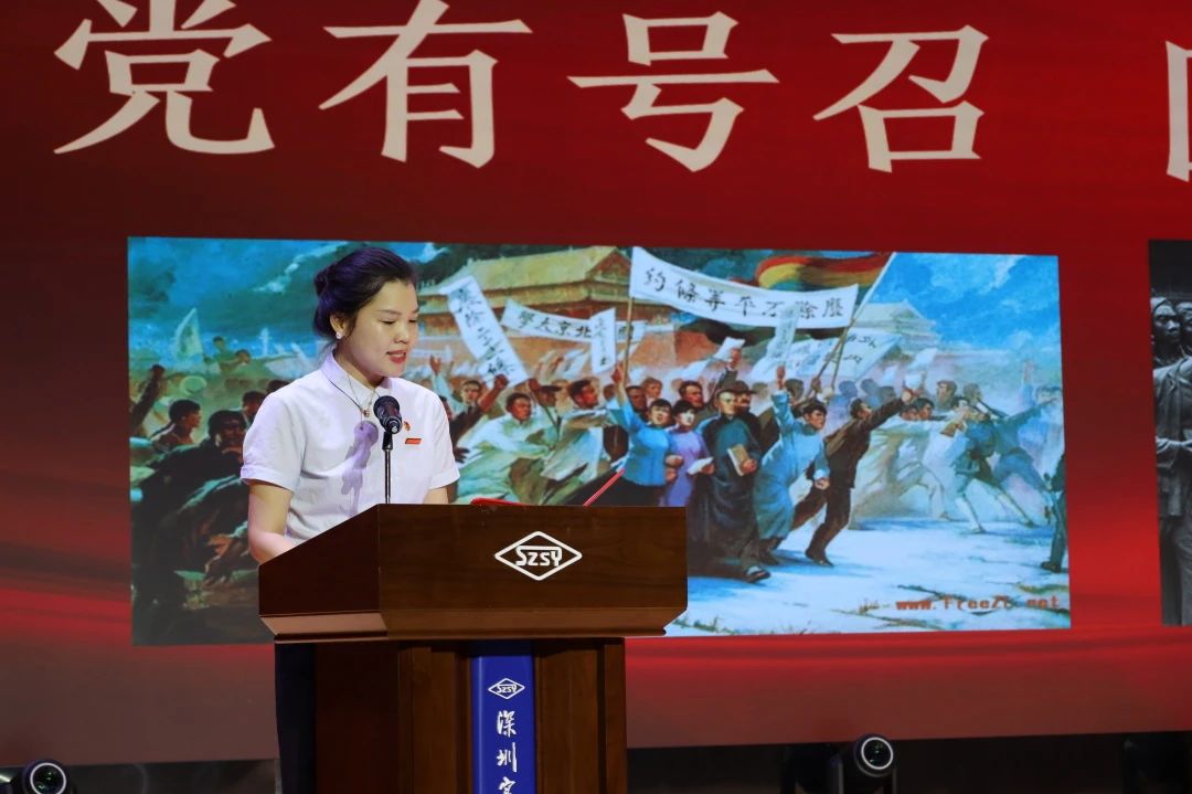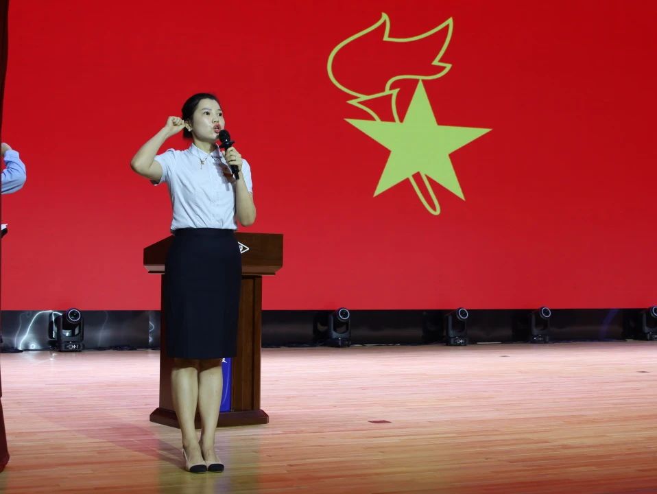 她代表团组织对新团员提出期待,强调中国青年应继承革命传统,面对国际挑战,应展现无畏担当,呼吁新时代青年发扬五四精神,从身边小事做起,为实现中华民族伟大复兴贡献力量,共筑青春篇章!