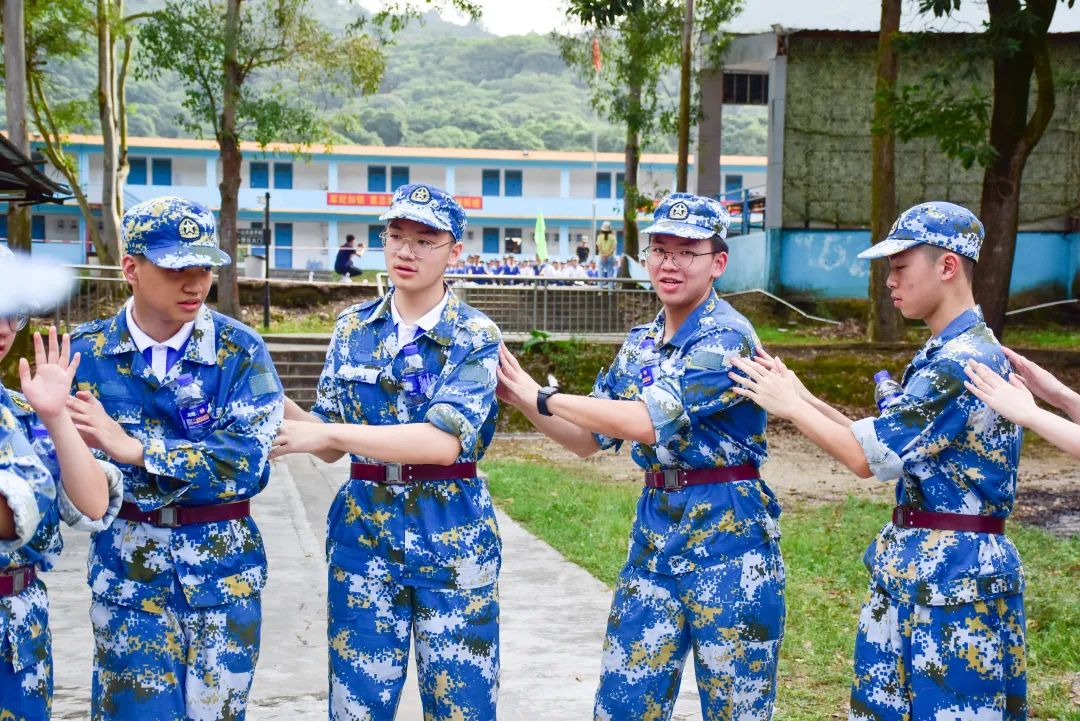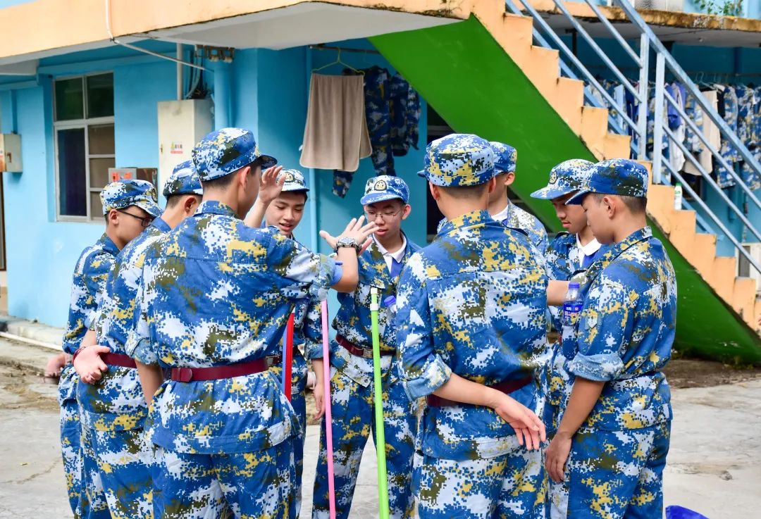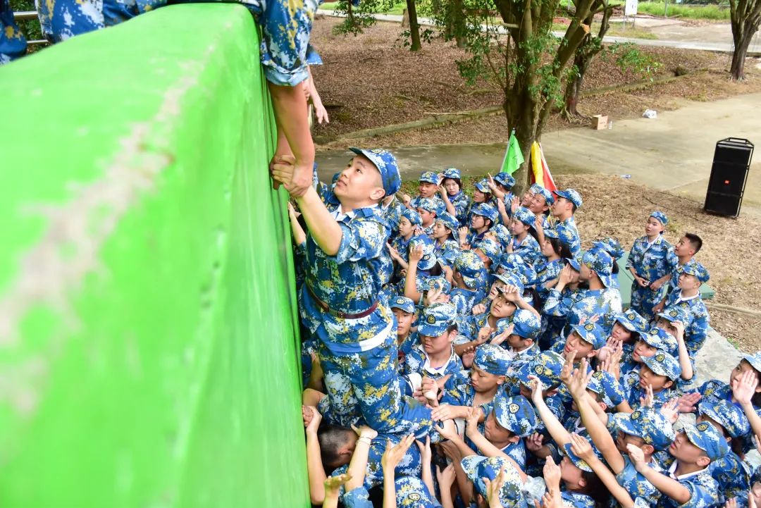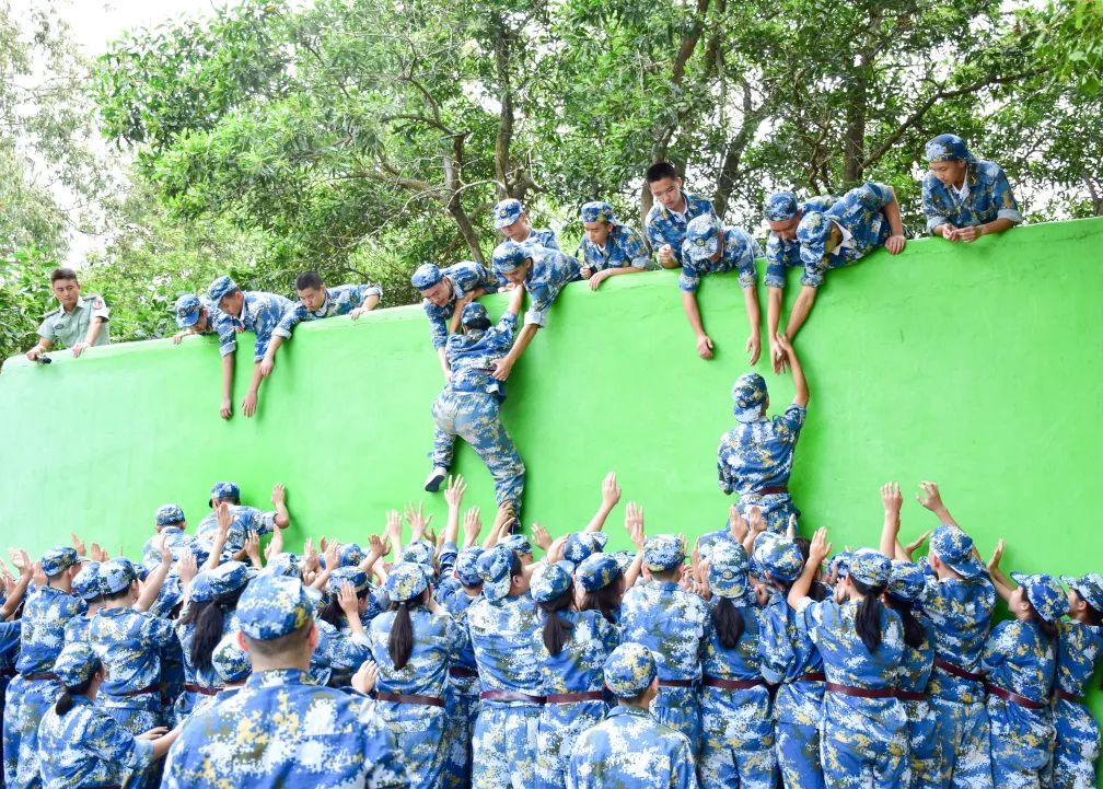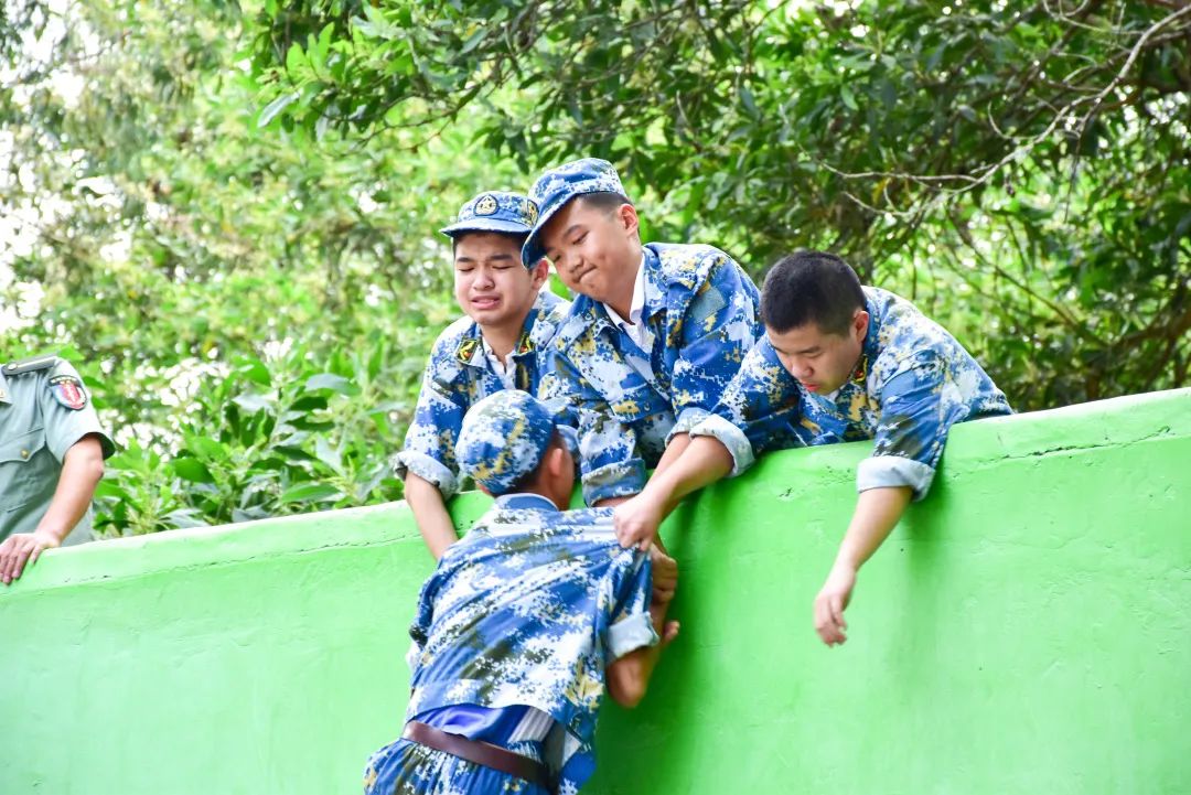 爬成功墙这一项拓展训练考验了学生的体力和心智。三四米高的成功墙上没有一个落脚点,人随时可能滑下来,全部同学需要在四十五分钟的时间内爬上这堵墙。面对这个难度很大的任务,同学们一起商量方案,分步实施,最终出色完成挑战,用汗水诠释了什么是团队协作精神。