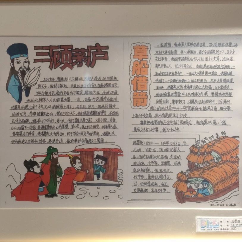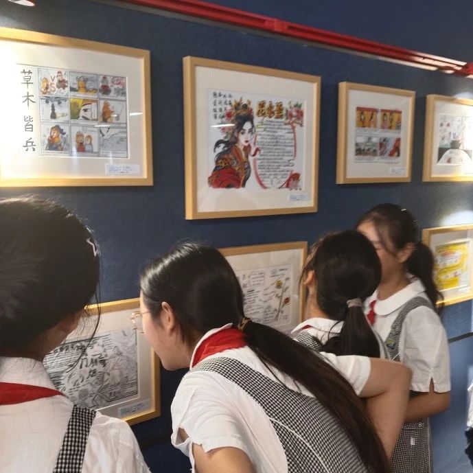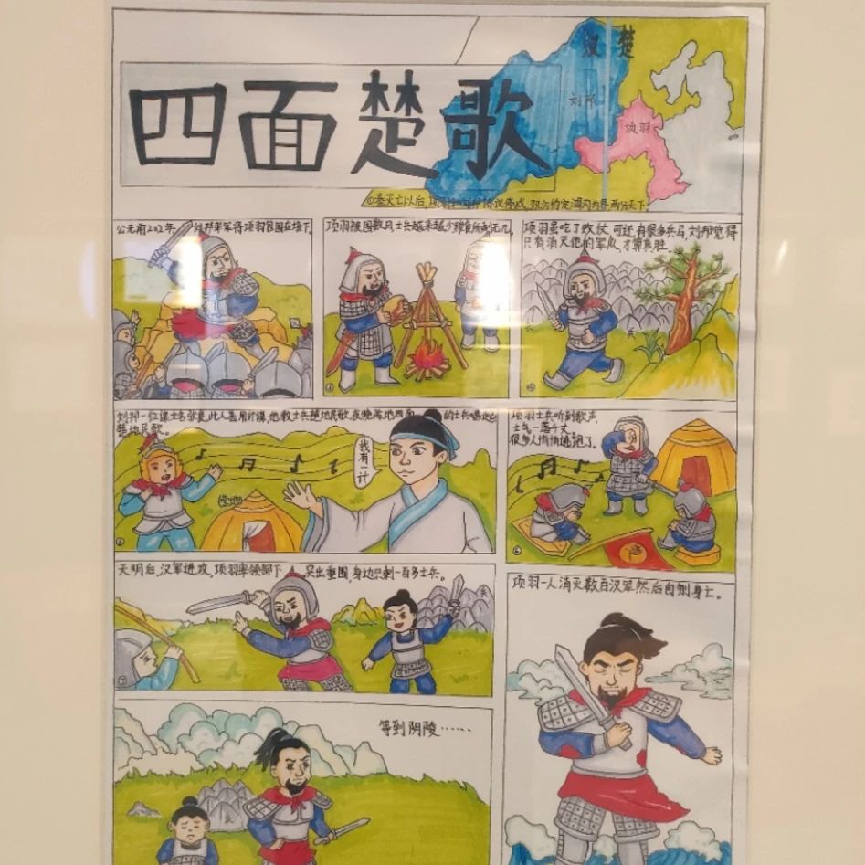 初一3班李楚妍同学表示:“创作时,我深入研究历史资料,确定主题与情感基调,精心布局每个细节,确保画面整体协调,采用丰富色彩与细腻线条,突出角色个性及场景特征,力求作品鲜活生动,传递出深刻的历史感与人物命运的悲壮美。”初一9班的杨采姗同学则认为这种形式促进她大胆融合现代流行元素,创新服饰,重构场景,让经典故事以现代生动的形式跃然纸上,让历史的智慧与文化的韵味跨越时空,与现代生活产生共鸣。