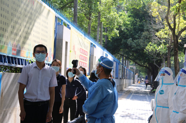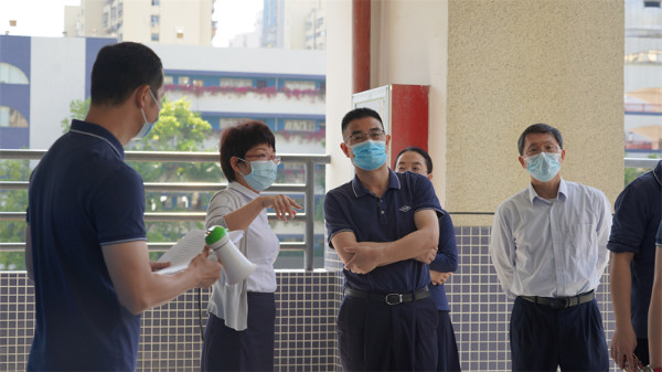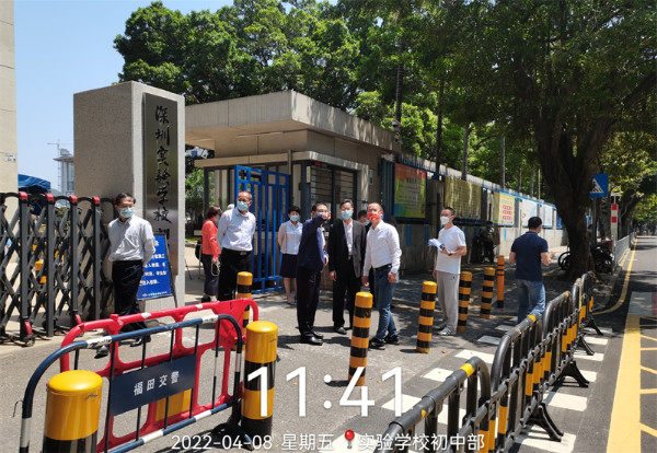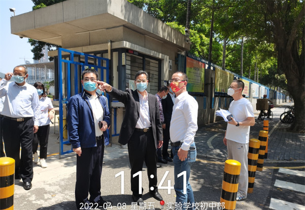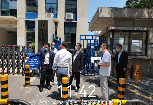 深圳实验学校衷敬高校长陪同市局领导检查并部署初中部防疫工作。