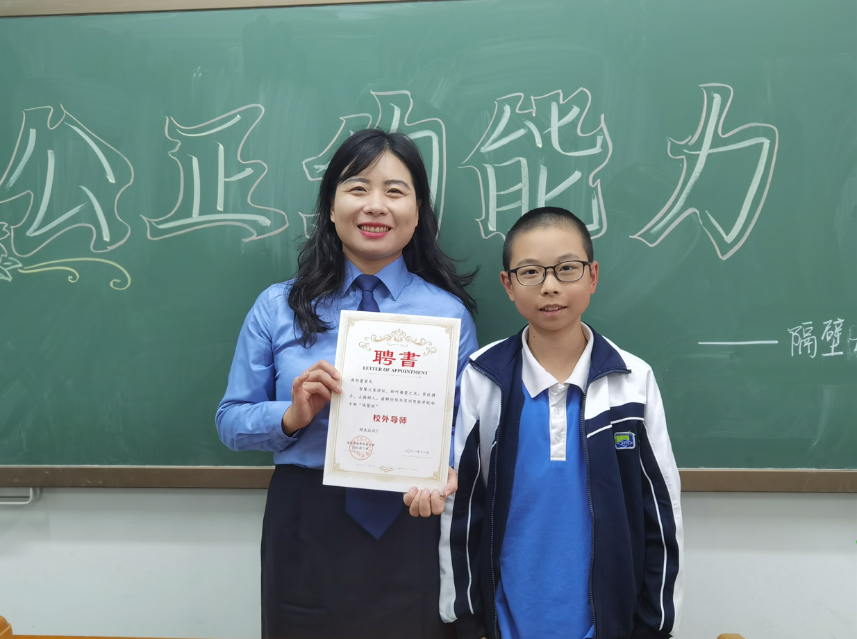 11月11日星期四下午班会课,“隔壁大讲坛”第一期于初二(1)班成功举办。本次活动邀请了周昀萱同学的妈妈张娜女士为同学们带来“公正的能力”主题讲座。