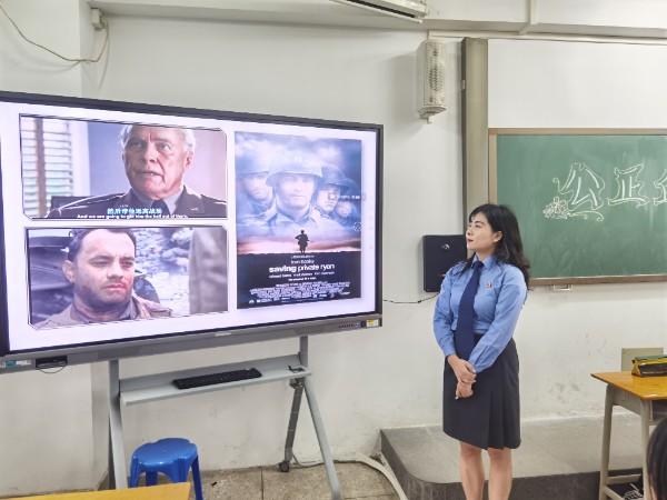 尚法官还给同学们播放了一个国外的法庭直播视频。视频中一位单亲妈妈因违章停车,需要支付抵几个月生活费的罚款。刚刚破产还要独自照顾一个十个月小宝宝的她为此不知所措,这位慈祥的法官选择了宽容、理解、原谅,用别人的捐款免了她的罚款,但有一个温暖的条件——当她以后有能力时,一定不要忘记帮助那些需要帮助的人。这位法官曾说:“绝大多数人到法院的经历是他们唯一一次和法庭打交道的机会。我不想让法庭吓到他们,所以,我对他们展示了足够的同情、理解,当然最重要的,还有公正。”这个视频让不少同学为之动容,尚法官通过这个视频告诉同学们,法官的职责就是用法理和人情编织一个温暖而有秩序的世界。