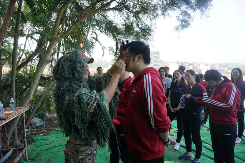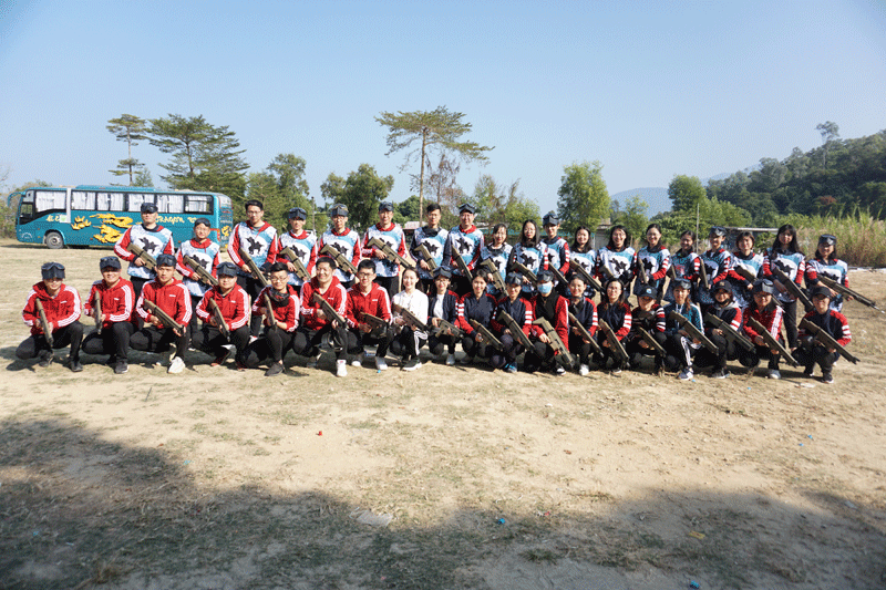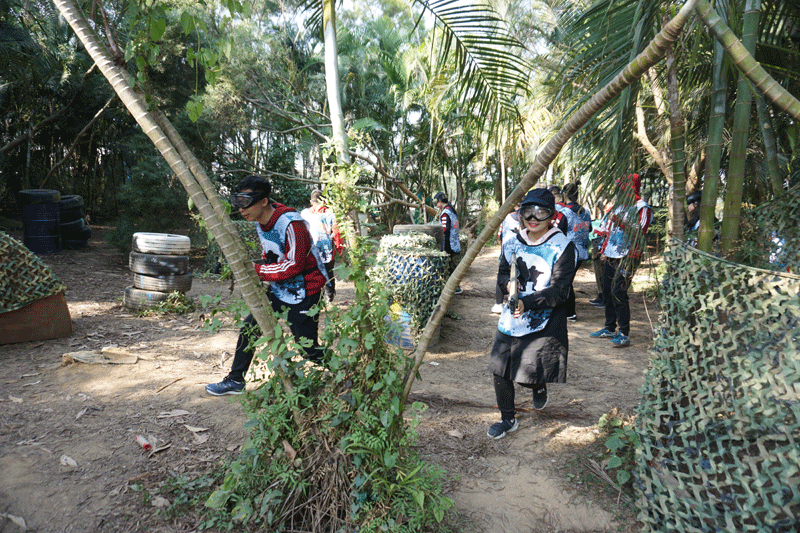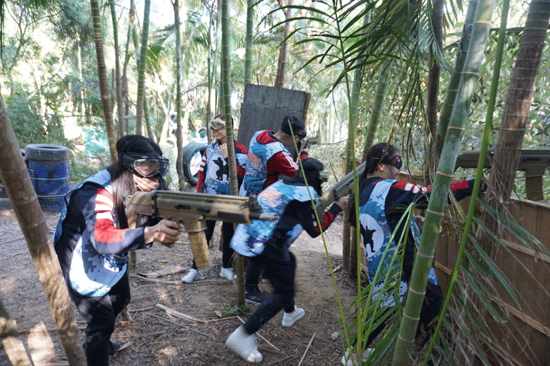 在一片欢声笑语中,时间不知不觉已到下午一点。吃过午饭后,又开始奔赴下一个期待已久的活动:真人CS对战。老师们被分为两队,并选出每队的“司令”和“参谋”。在“司令”和“参谋”率领下,一场“警察”与“土匪”的对决打响了。双方或攻或守,或左右开弓包抄“敌人”,或以退为进诱敌深入。在“枪林弹雨”中体会战场谋略和决胜的重要性。