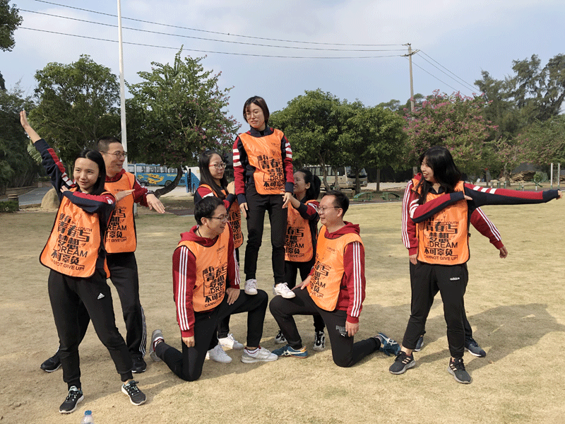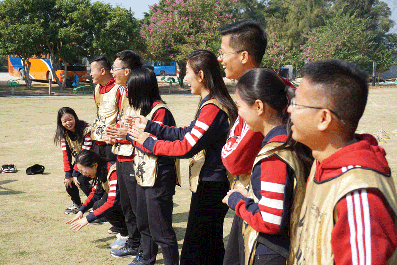 经过一个小时的车程,老师们来到了大鹏区华狼拓展基地。在教练组织的第一个“破冰”小游戏中,老师们逐渐从舟车劳顿中兴奋起来。他们放下拘谨,并对接下来的活动充满期待。