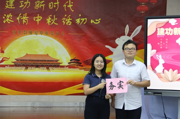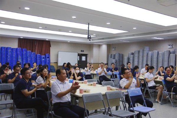 鸾翔凤集,百川归海。2021年秋季,初中部教师队伍又迎来了四位优秀青年才俊的加盟。活动伊始,四位新入职的青年教师进行了才艺表演,并向大家送上中秋节祝福。陶伟老师代表新入职青年教师发言,畅谈入职以来的工作体会和对实验文化的理解,表达在建党百年重要历史时刻入职实验学校的喜悦和自豪,表示一定牢记青春使命,虚心向学,拼搏进取,砥砺前行,以无悔的奋斗在“实验路”上开拓美好教育人生。