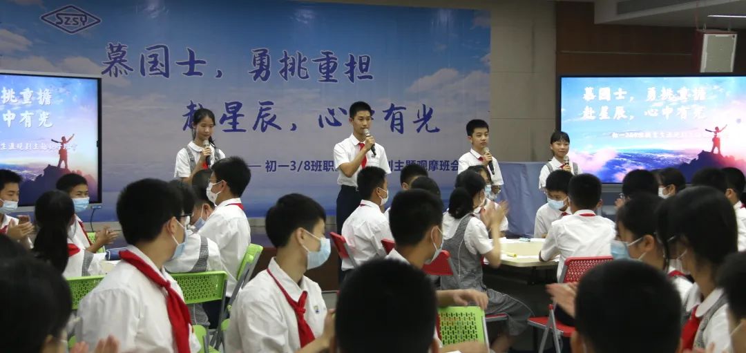 6月22日,初中部初一(3)班、(8)班全体同学联合举办了一场职业生涯规划主题观摩班会。班会主题是“慕国士,勇挑重担;赴星辰,心中有光”,围绕“困局——问道——抉择——期许”四个环节层层深入引导同学们思考个人命运与国家命运之间的紧密联系,旨在培养热爱祖国,有努力成为中华民族脊梁追求的实验学子。