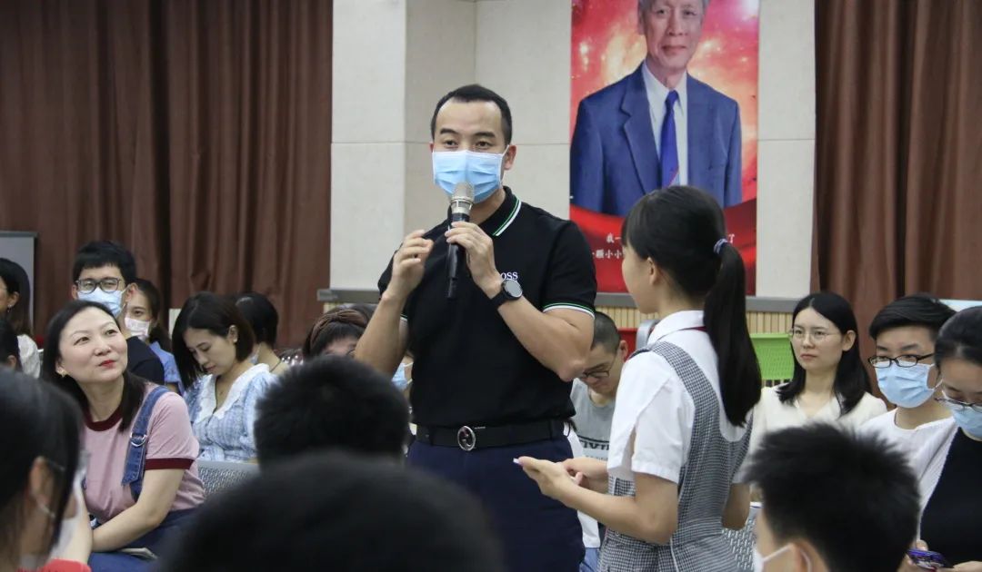 紧接着,主持人预设了三个场景,激发同学们对不同环境中职业选择的思考。大家纷纷踊跃表达自己的真实看法:有对爱好的坚持,也有对理智的肯定;有对未来的充分信心与勇气,也有为祖国发展做建设的坚定,对祖国永远怀有一种炽热的赤子之心的抉择。观众席上的邰士剑老师也积极加入探讨,表达了他对于坚守初心的忠实追求。人生道路的选择在于每个人的不同追求,无可厚非,但我们会更加敬仰那些在国家危难之际挺身而出的民族脊梁们,钦佩在普通职业中脚踏实地,勇挑重担的普通人。主持人用伟人——钱学森等国士的选择,以及平凡人——新东方老师董宇辉火遍全网的直播,00后深圳女孩古慧晶对于汽修专业的执著,体现了职业选择与个人前途、祖国命运、爱好与现实之间的联系与抉择。