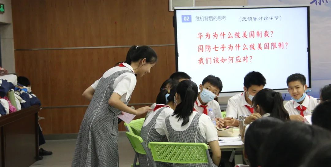 整场班会以时事导入话题,主持人通过视频介绍华为近年遭遇的制裁,芯片及半导体技术开发陷入困局;“国防七子”高校由于在航空、航海、航天领域极其亮眼,上榜了美国“实体清单”……同学们对背后的原因进行积极讨论,从发展迅速导致技术封锁以及高科技、高层次人才缺乏等方面阐述了一个学生眼里的制裁事件。中间穿插以(8)班一位同学及其父亲的亲身体验表明了高精技术人才对于祖国伟大复兴的重要意义。
